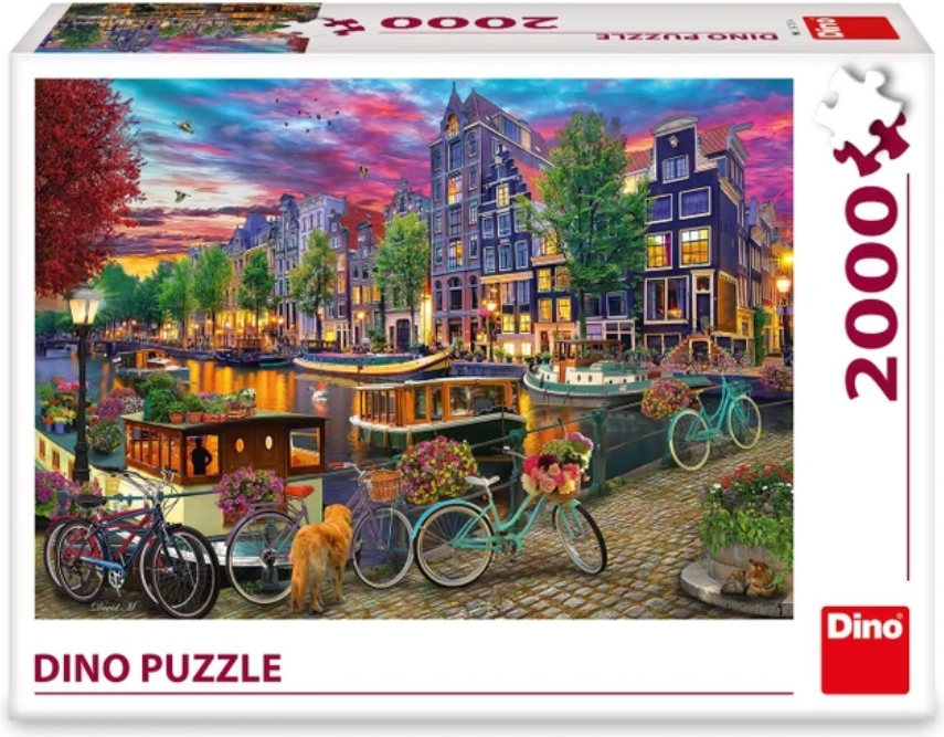 Questo puzzle di grande formato di DINO porta con sé l’atmosfera unica dell’Amsterdam dipinta – canali, barche, fiori e facciate storiche in colori vivaci. Grazie all’alto numero di 2000 pezzi tagliati con precisione conquisterà sia i puzzlisti esigenti sia gli amanti dei motivi di design.