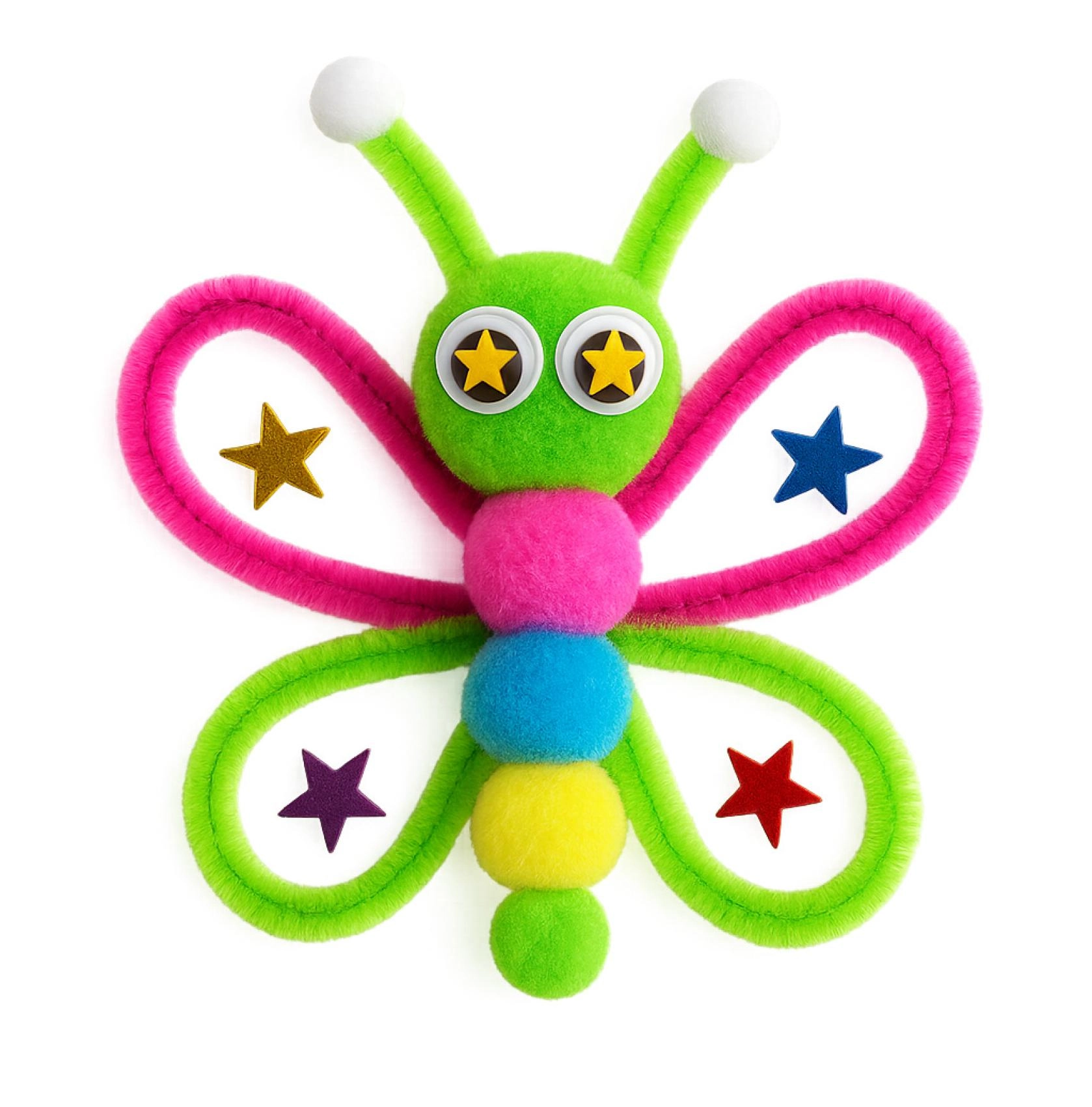 Questo kit creativo è ideale per i piccoli artigiani che amano scoprire il mondo dei colori e delle forme. I bambini allenano la motricità fine, la pazienza e il pensiero creativo divertendosi a realizzare ragnetti, farfalle e altre decorazioni allegre.