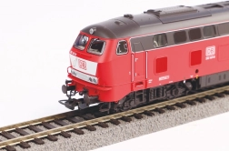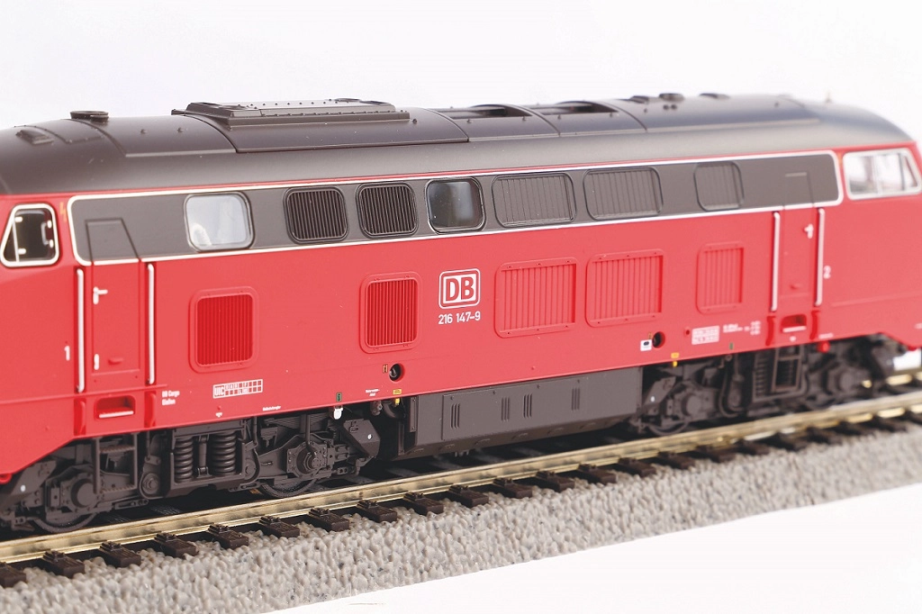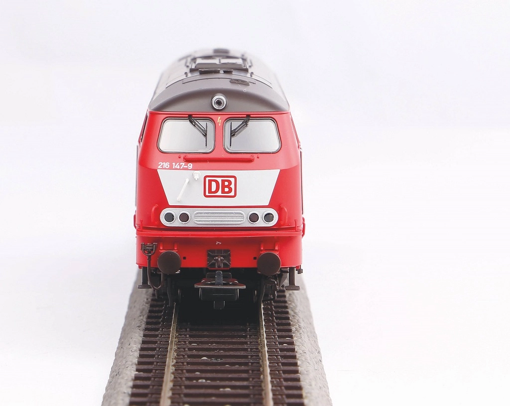 Questa iconica locomotiva diesel BR 216 dell’epoca V si ispira allo stato operativo reale della DB AG. Il modello si distingue per la colorazione realistica, l’incisione accurata e la riproduzione fedele dei dettagli, incluse le maniglie per la manovra sul telaio. La variante senza vomere spartineve corrisponde all’esercizio degli anni ’90, inserendosi perfettamente nei plastici delle epoche III–V.