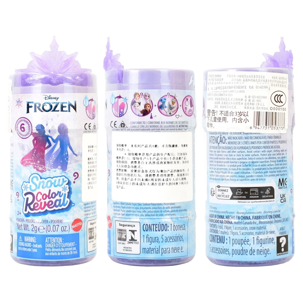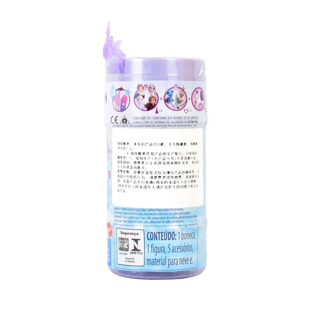 La bambolina interattiva Snow Colour Reveal porta ai bambini la gioia della sorpresa e del gioco creativo. Inserisci il tubo con la bambolina nell’acqua, osserva l’attivazione del effetto neve e in pochi istanti si rivelerà quale personaggio è nascosto all’interno. Ogni unboxing è unico e pieno della magia invernale del mondo di Frozen.