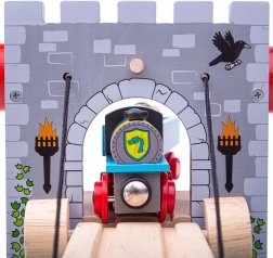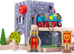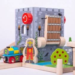 Crea una fortezza medievale sul tracciato! Il ponte levatoio in legno BIGJIGS RAIL con verricello funzionante permette ai bambini di sollevare il ponte, fermare il trenino e mettere in scena avventure cavalleresche. La muratura realistica in pietra, gli stemmi, le torce e il ponte sopra il “fossato” stimolano la fantasia e il gioco tematico.