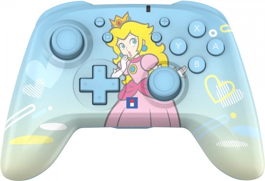 Il controller wireless HORIPAD nella finitura azzurro pastello con tema PRINCESS PEACH offre libertà di movimento e controllo affidabile per i tuoi giochi preferiti su NINTENDO SWITCH. Grazie alla struttura leggera ma robusta si adatta perfettamente alle mani e assicura una presa salda anche durante lunghe sessioni di gioco.