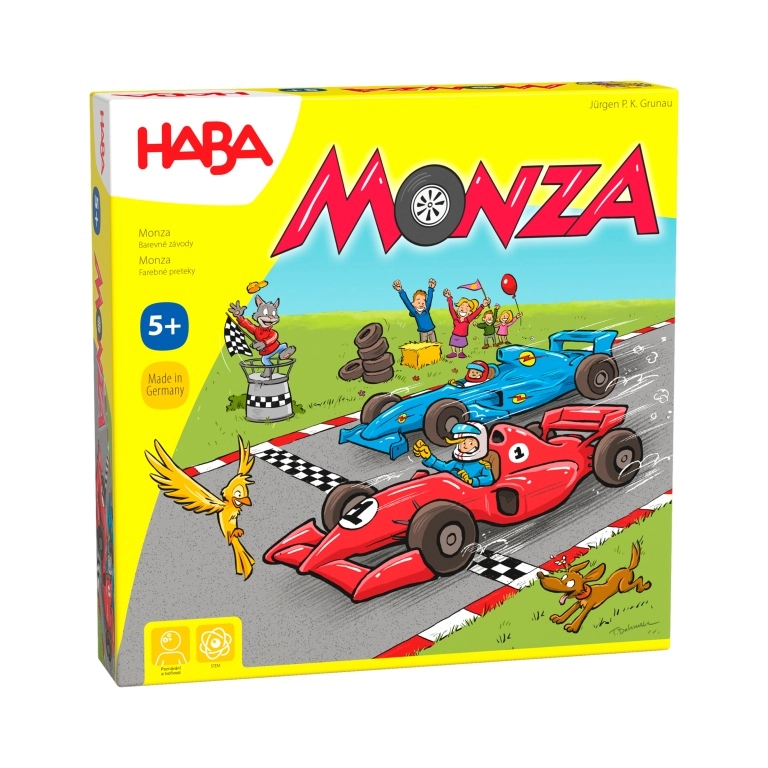 Il divertente gioco di famiglia Monza del marchio Haba offre gare veloci piene di tattica e fortuna. Grazie alle regole semplici è ideale per bambini e adulti, si gioca in 2–6 giocatori e una partita dura solo circa 15 minuti.