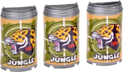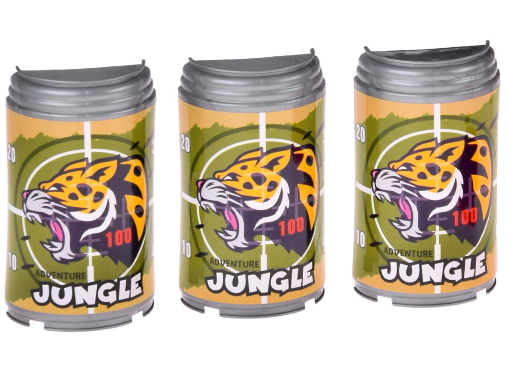 Tre leggere “lattine” con stampa ADVENTURE JUNGLE e zone di punteggio trasformano l’allenamento di mira in un gioco divertente per uno o più giocatori.
