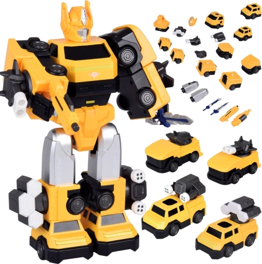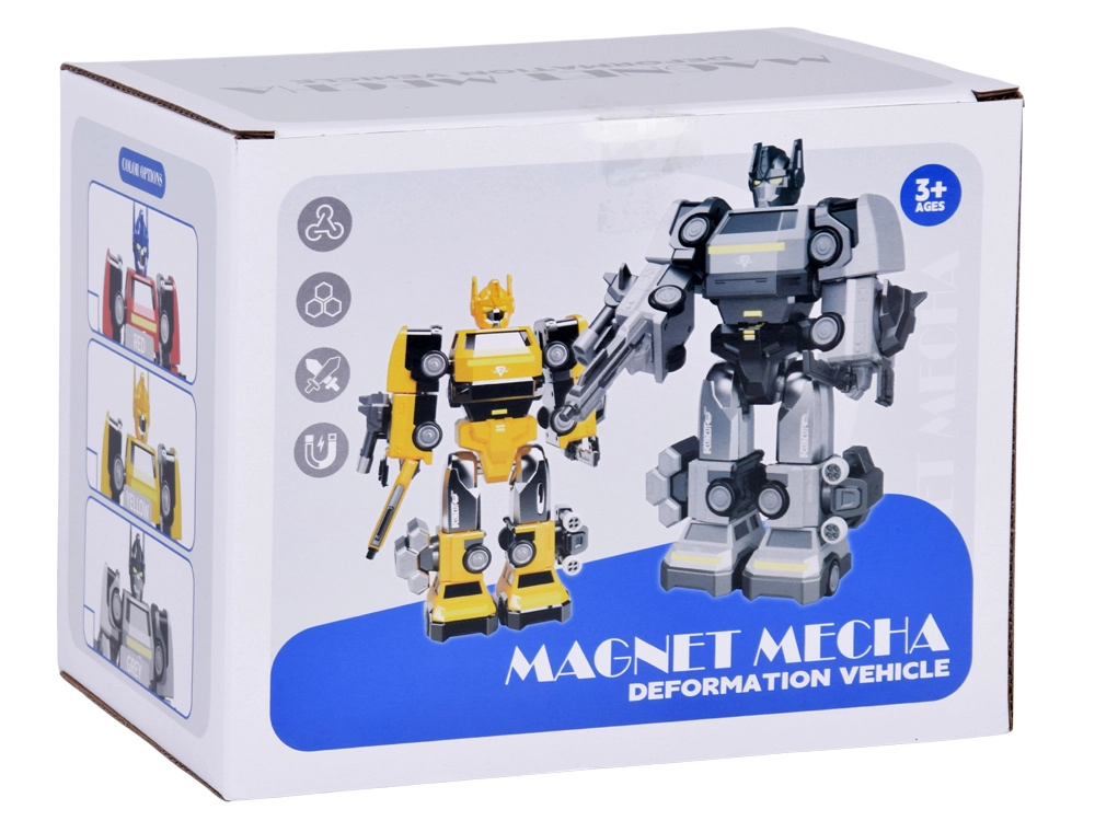 Questo futuristico transformer magnetico colpisce per la vistosa combinazione di colori giallo-nero e la costruzione robusta. Grazie ai connettori magnetici potenti, i bambini riconfigurano rapidamente il robot e creano le proprie scene eroiche. L’illuminazione LED nella parte inferiore dona all’azione un’atmosfera realistica.