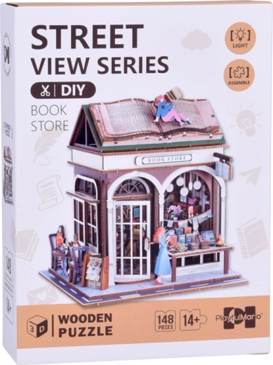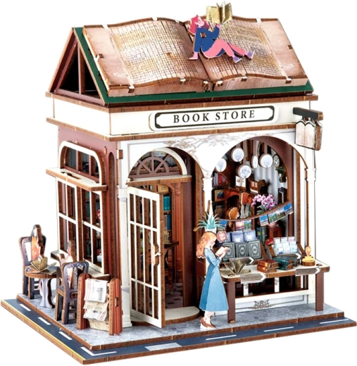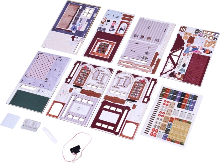 Questo dettagliato puzzle 3D in legno ti permette di costruire una mini libreria realistica, ricca di libri e piccole decorazioni. L’illuminazione LED crea, dopo il tramonto, un’atmosfera accogliente e mette in risalto i dettagli studiati, visibili dalle finestre. Il modello è perfetto come originale decorazione per interni e come regalo per gli appassionati di modellismo e fai‑da‑te.