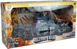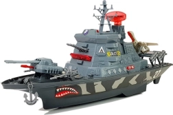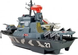 - Nave militare con luci e suoni, 2 figurine di soldati, aereo, pontone, set di armi