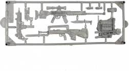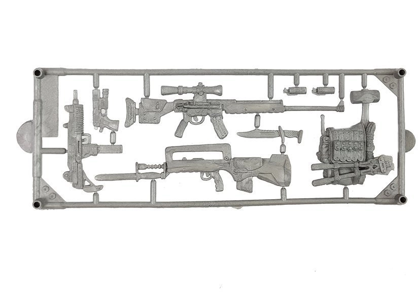 Nella confezione trovi 2 figurine di soldati, un aereo di bordo, un gommone/pontone e un set di armi per un gioco tattico vario.
