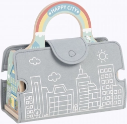 Questo creativo set in legno trasforma ogni tavolo in una città vivace. Le strade in feltro si assemblano facilmente in percorsi diversi; la piccola macchinina passa sotto l’arco cittadino, vicino al semaforo e alla segnaletica. La struttura portatile a forma di borsa permette di portare l’intera città in viaggio – a casa dei nonni o in vacanza.