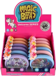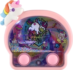 La magica gioco tascabile ad acqua con motivo unicorno diverte i bambini ovunque e in qualsiasi momento. Premendo i pulsanti metti in movimento l’acqua e infili gli anelli sui piolini. Il gioco sviluppa motricità fine, concentrazione e pazienza e, grazie agli effetti luminosi, sembra ancora più incantato.