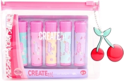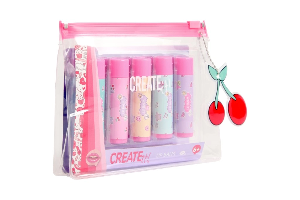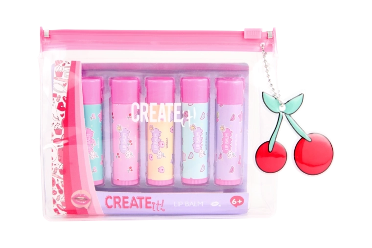 Il set CREATE IT! propone cinque balsami labbra giocosi in tonalità pastello che si prendono cura delle labbra tutto il giorno. Grazie al pratico astuccio trasparente con zip rosa, hai tutti i balsami ben insieme – a casa, a scuola e in viaggio.