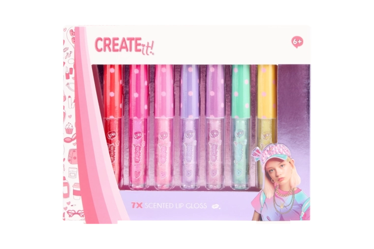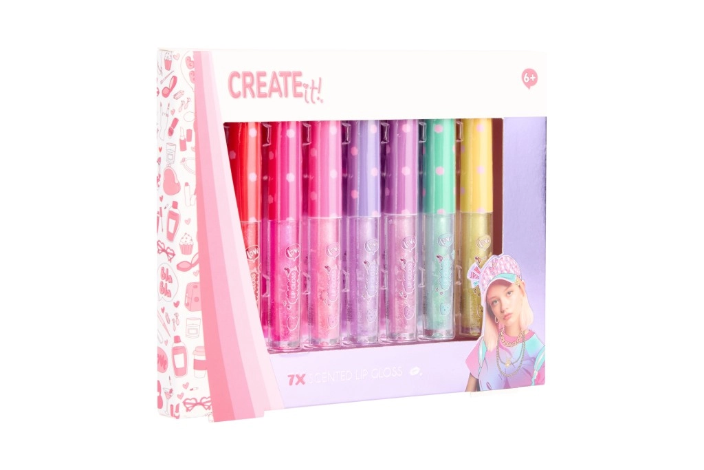 Il set CREATE IT! offre sette gloss colorati con finish scintillante che illuminano le labbra e donano un lieve tocco di colore. La texture leggera si applica facilmente ed è adatta al trucco di tutti i giorni. Ogni gloss ha una profumazione diversa, così puoi divertirti ed essere creativa nella scelta.