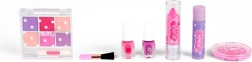 - 2× smalto per unghie, gessetto per capelli, pennello grande, balsamo labbra, rossetto, piccolo applicatore doppio, palette con 6 ombretti glitterati