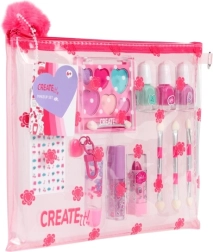 Adorabile set trucco per bambini in pochette trasparente, ideale per piccole amanti del make-up. Include tutto il necessario per un trucco giocoso e la decorazione delle unghie: 3 smalti per unghie, gloss labbra, balsamo labbra, 3 applicatori e adesivi per unghie. La pratica pochette con pom‑pom decora e al tempo stesso mantiene tutti gli accessori cosmetici ben organizzati.