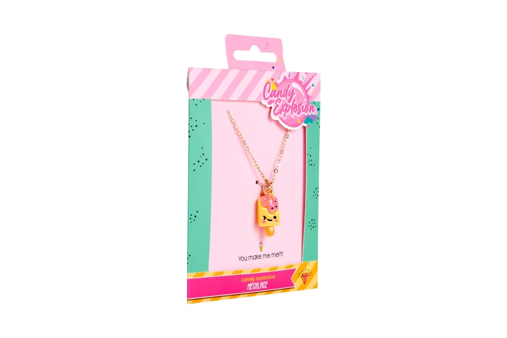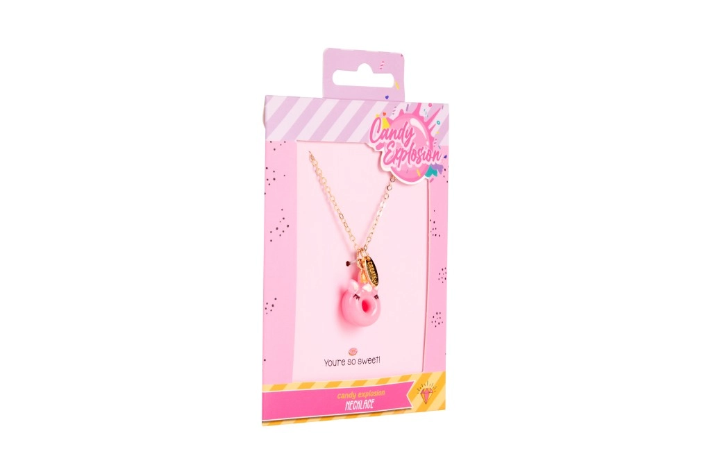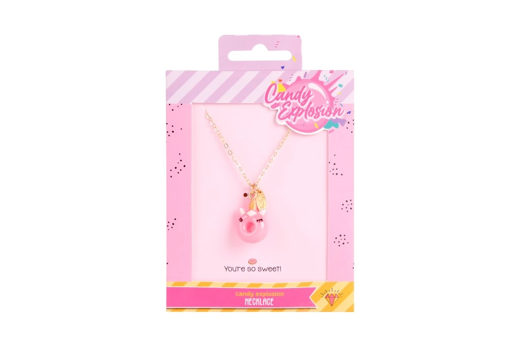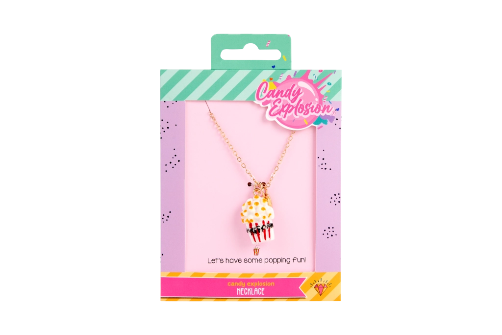 Ogni collana è presentata su una card stilosa Candy Explosion con foro per appenderla – perfetta come piccolo pensiero regalo.