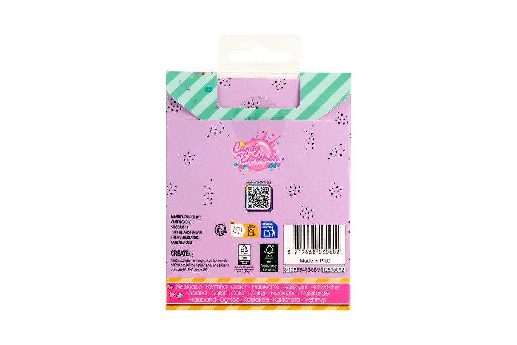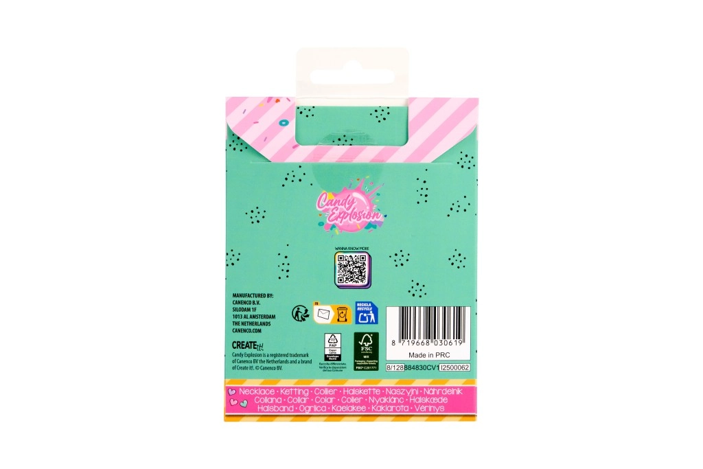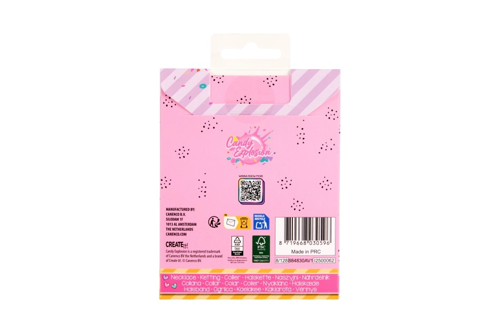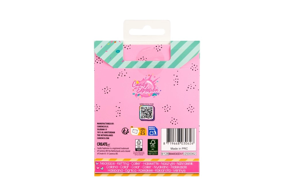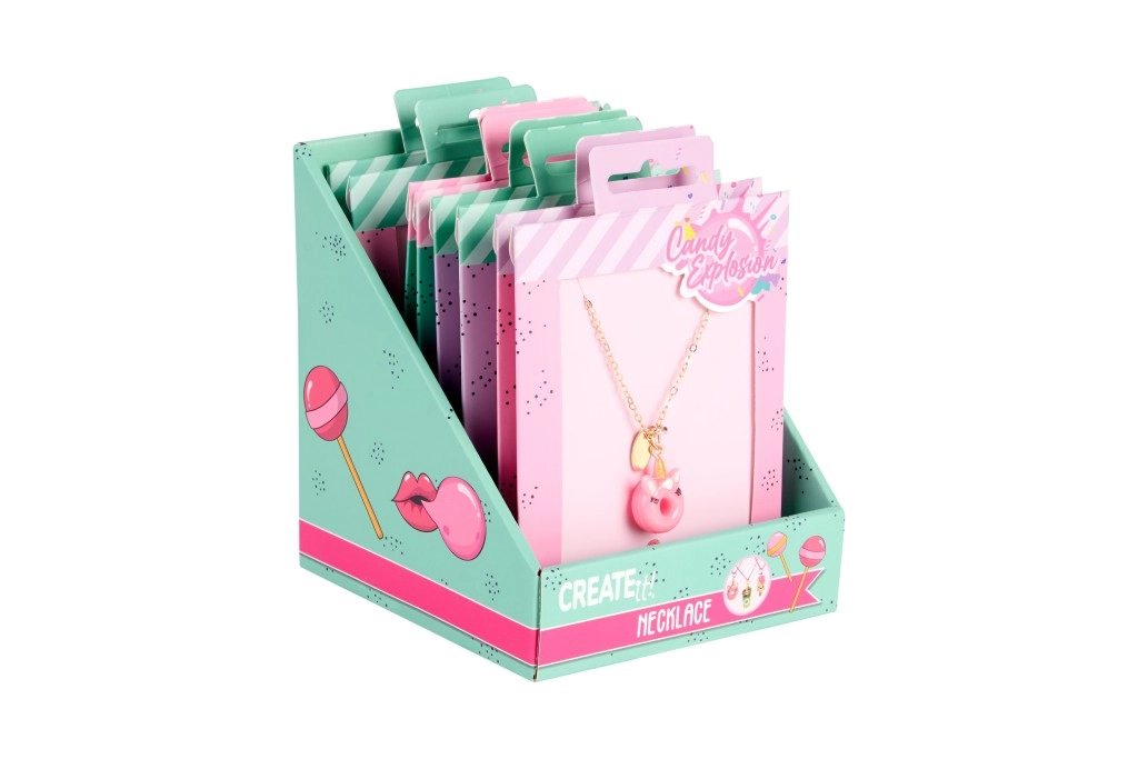 Ogni collana è presentata su una card stilosa Candy Explosion con foro per appenderla – perfetta come piccolo pensiero regalo.