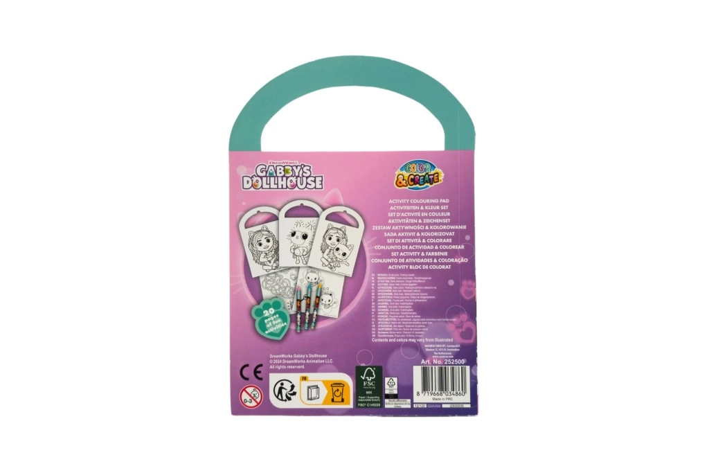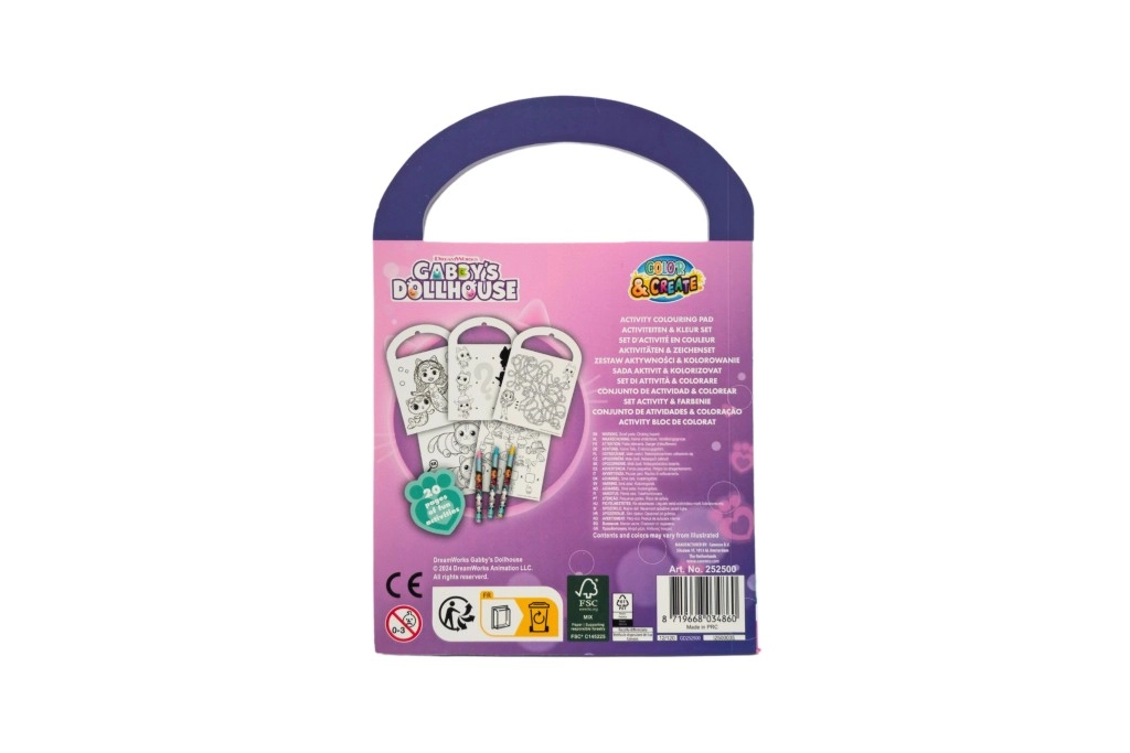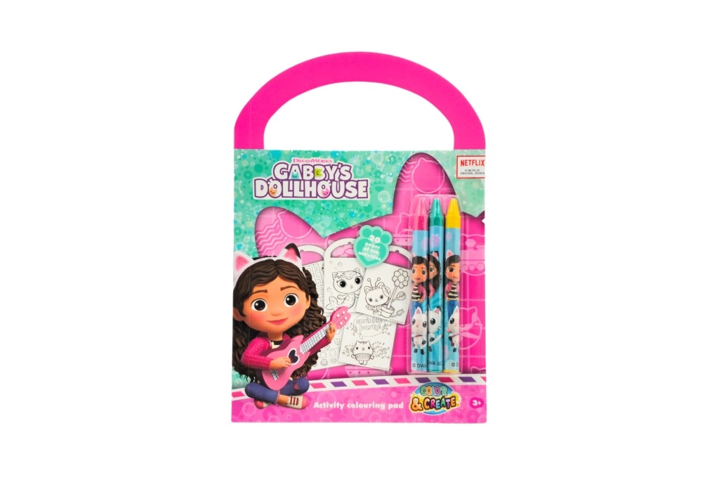 Scopri il magico mondo di GABBY’S DOLLHOUSE in un quaderno creativo portatile con pagine da colorare, attività e rompicapi. La maniglia integrata facilita il trasporto, rendendolo perfetto per gite, viaggi in auto e visite. Nella confezione sono inclusi 3 pastelli colorati per un divertimento immediato senza acquisti extra.