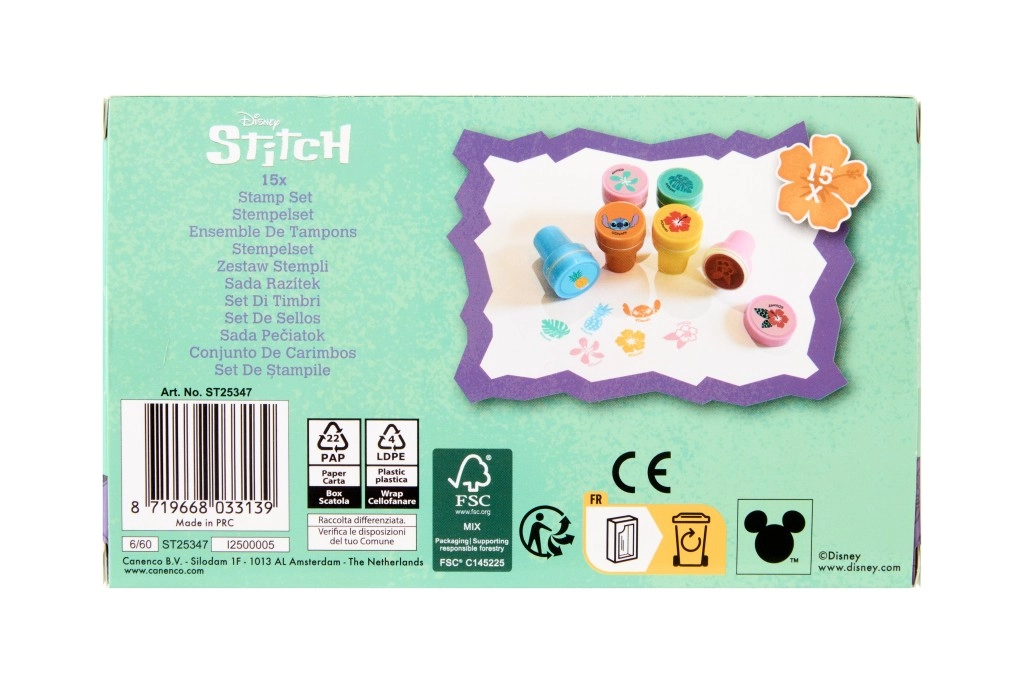 Scopri il divertimento creativo con il set di timbri STITCH. I bambini possono creare facilmente decorazioni originali, abbellire i quaderni o realizzare biglietti e etichette regalo. Grazie al tampone colorato incluso, il set è pronto all’uso immediato.