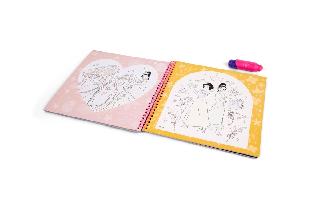 Scopri il magico libro da colorare con le Principesse DISNEY, che funziona con il principio della pittura ad acqua. Basta riempire il pennello incluso con acqua, passarlo sull’immagine e i colori appariranno da soli. Una volta asciutti, i colori scompaiono, quindi il libro è riutilizzabile – perfetto per i viaggi e per creare a casa.