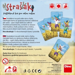 Scaccia la noia con un rapido gioco di carte per bambini dai 5 anni. Dino Spaventello allena prontezza, memoria e riflessi rapidi. I giocatori completano il colore mancante dei vestiti dello spaventapasseri e chi per primo si libera di tutte le carte vince. Regole semplici, 72 carte bifacciali, gioco per 2–6 giocatori, prodotto nella Repubblica Ceca e premiato con il certificato Giocattolo sicuro e di qualità.