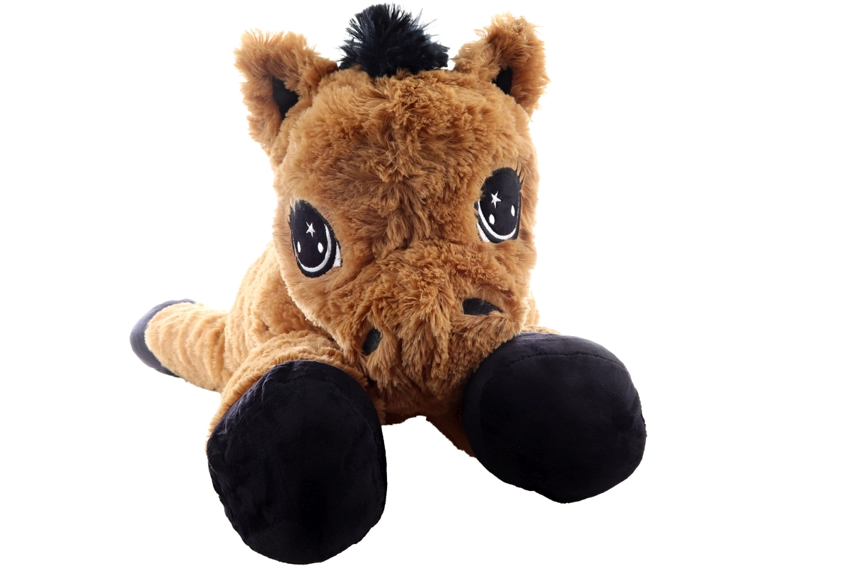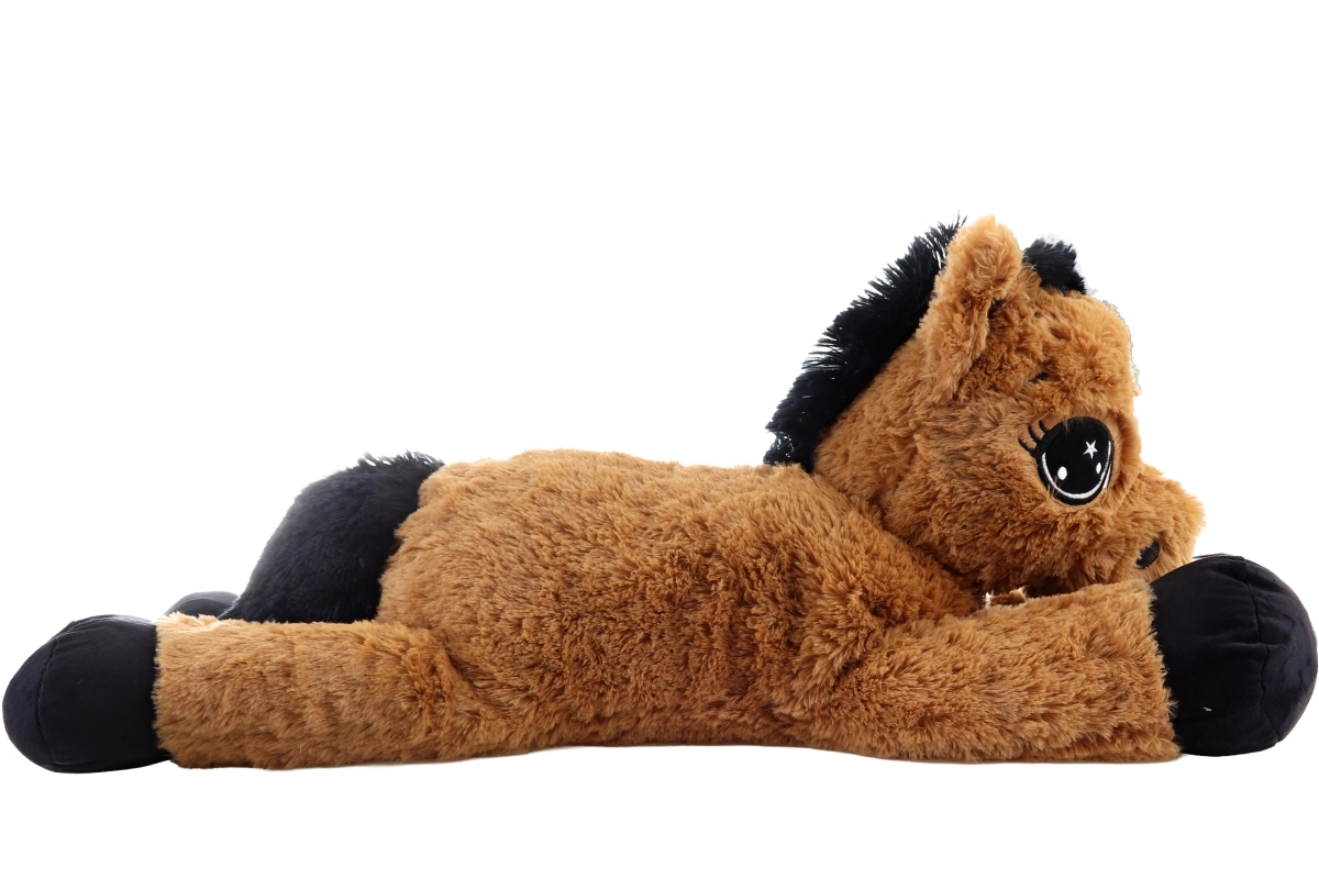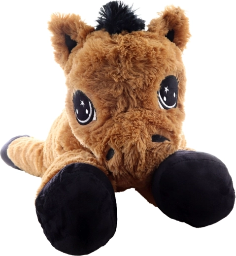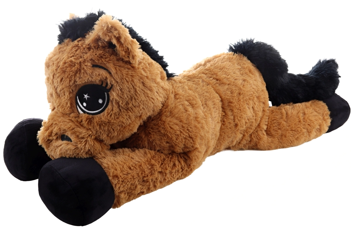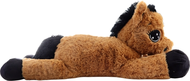 Questo cavallo di peluche marrone in posizione sdraiata conquista al primo tocco. Ha grandi occhi ricamati, criniera e coda morbide e funge sia da amico coccoloso sia da comodo supporto per la lettura o per guardare i cartoni. Le dimensioni 80 × 32 × 25 cm garantiscono spazio sufficiente per abbracci e relax.