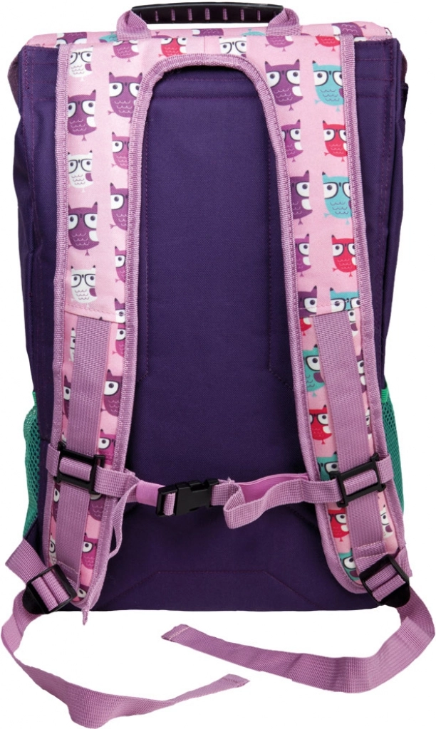 Questo zaino scolastico viola con un adorabile motivo di civette è ideale per scolari e bambini in età prescolare. Grazie alla struttura intelligente, inclusa la tasca imbottita per notebook o tablet, mantiene tutto il materiale scolastico al sicuro e ben organizzato. Materiali resistenti, manico robusto e fibbie in alluminio assicurano lunga durata e un uso quotidiano senza problemi.