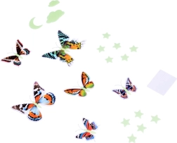 - Farfalle (più pezzi), stelle luminose + luna e nuvolette, adesivi biadesivi per il fissaggio