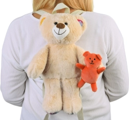 Adorabile zainetto in peluche a forma di orsetto con zip nascosta e spallacci regolabili, ideale per l’asilo e le gite. Offre materiale morbidissimo, tasche con zip sicure per i piccoli oggetti e un design giocoso con un piccolo orsetto arancione che i bambini adoreranno.