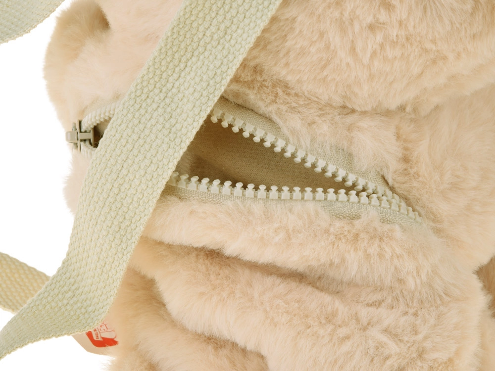 Questo soffice zainetto a forma di orsetto beige unisce un giocattolo e un pratico bagaglio in uno. Dettagli colorati su zampette e orecchie, sorriso ricamato e superficie pelosa e coccolosa stimolano la fantasia dei bambini e offrono comfort durante l’uso. La tasca con zip nascosta accoglie piccoli tesori, merenda o fazzolettini.