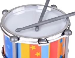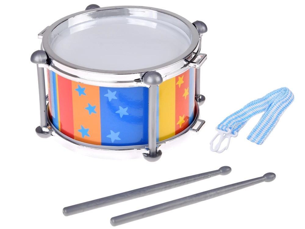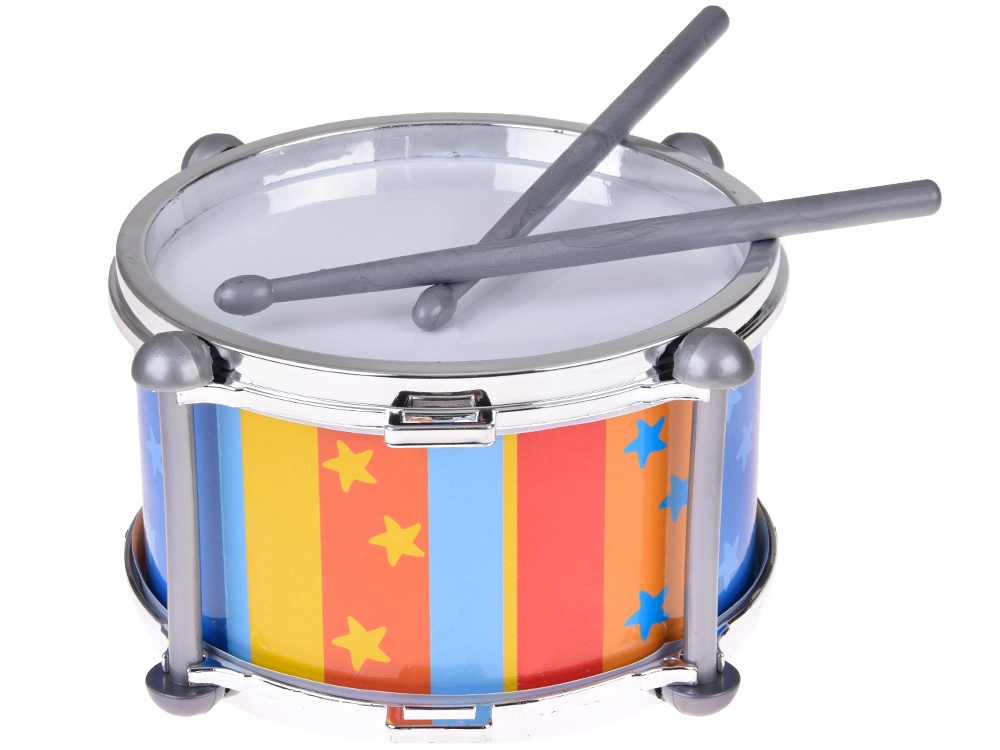 Le strisce verticali colorate con stelline e i cerchi dall’effetto metallico rendono il tamburo un giocattolo e un regalo accattivante. Suonare il tamburo sviluppa la motricità fine, la coordinazione occhio–mano, la percezione uditiva e il naturale senso musicale.
