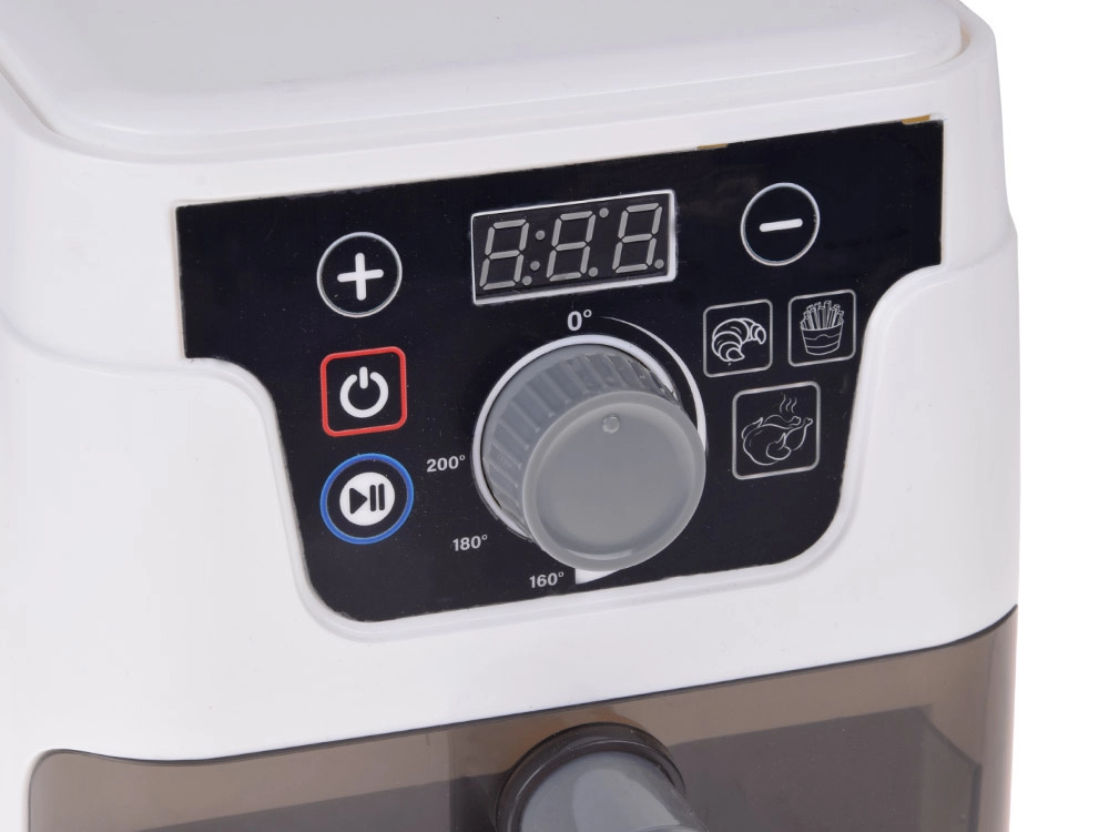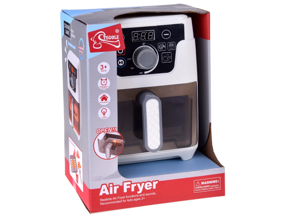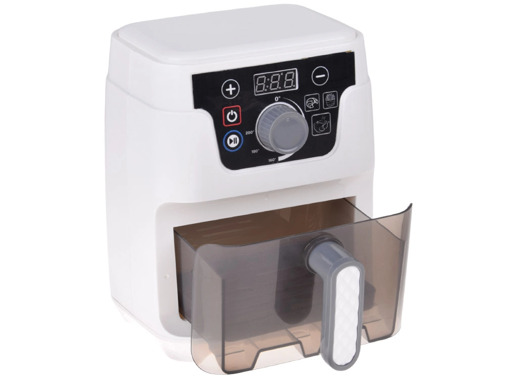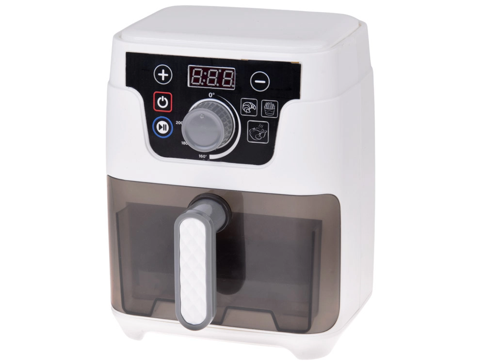 Piccola star dei fornelli in azione! La friggitrice per bambini AIR FRYER dal design realistico con luce nel cestello, suoni di frittura e display a colori insegna ai bambini i principi della cucina in modo giocoso. Il controllo digitale permette di impostare tempo e temperatura e di avviare programmi automatici per prodotti da forno, patatine e pollo.