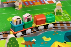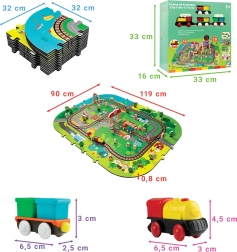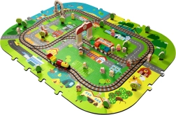 Inclusi 34 accessori – personaggi, segnali, alberi e altre decorazioni per un gioco realistico. Il trenino con i vagoni si collega facilmente, trasporta il carico nelle scatoline e permette di modificare la scena secondo la fantasia. Il set è ideale come regalo, conforme a EN 71, RoHS 2011/65/EU e dotato di CE.