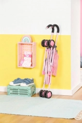 Dietro al sedile trovi una pratica rete porta-spesa per piccoli oggetti, biberon o i giocattoli preferiti. Dopo aver finito di giocare, il passeggino si ripiega in dimensioni compatte, occupando pochissimo spazio. È perfetto per bambole di 36–43 cm e favorisce il gioco creativo e duraturo.