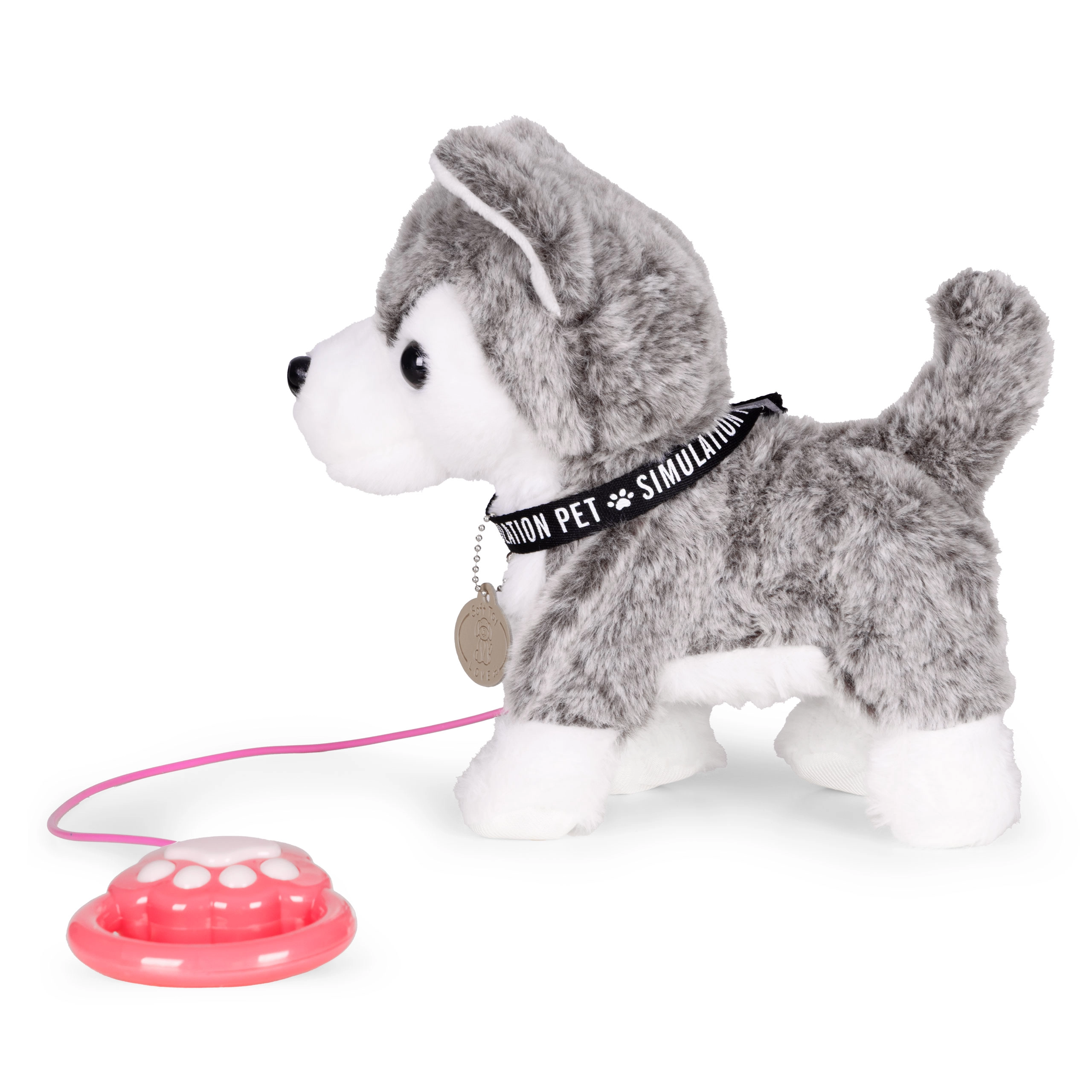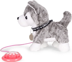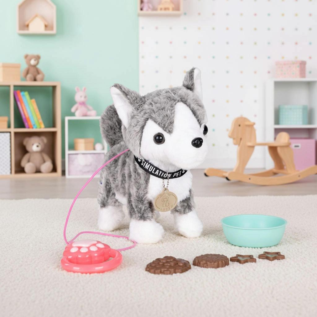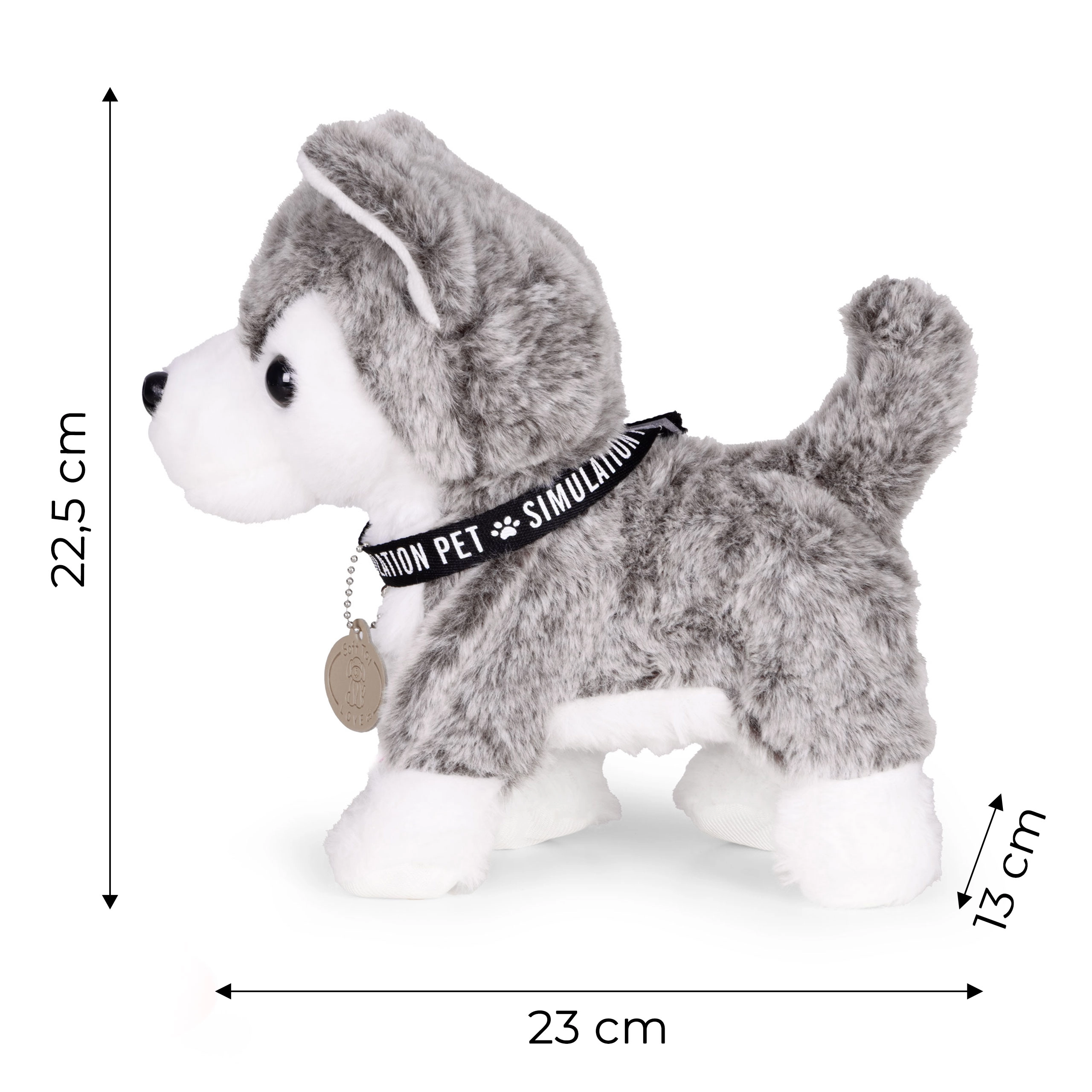 Premendo il pulsante sul guinzaglio, l’husky si mette in movimento, scodinzola amichevolmente e annuisce con la testa – proprio come un vero cucciolino.