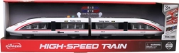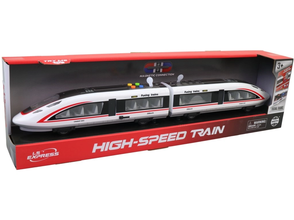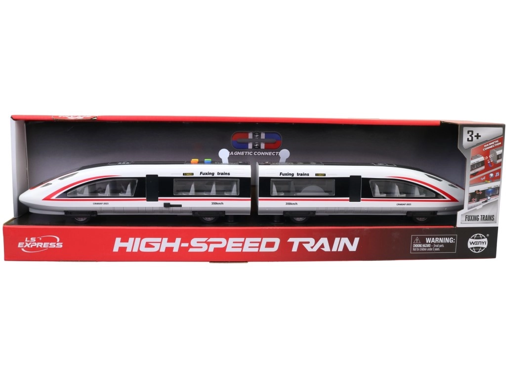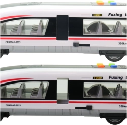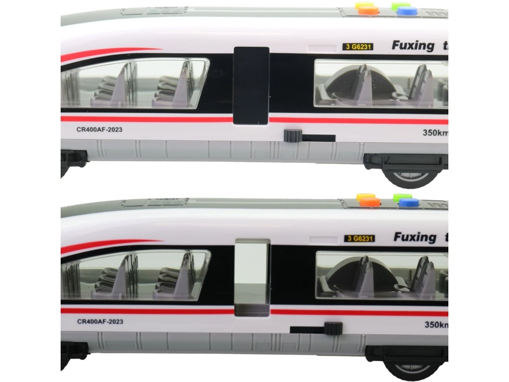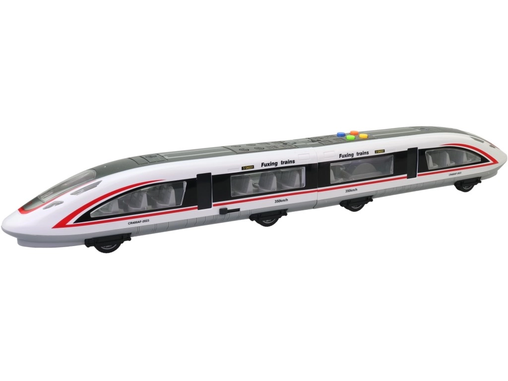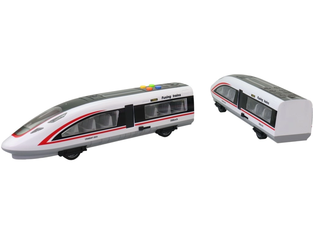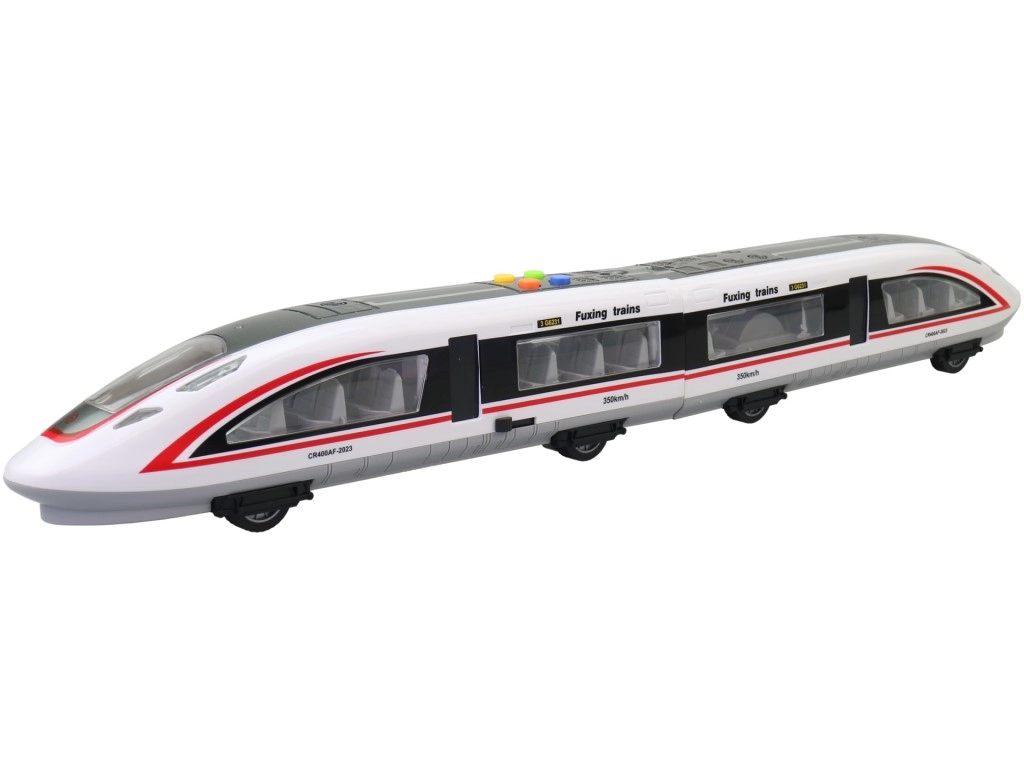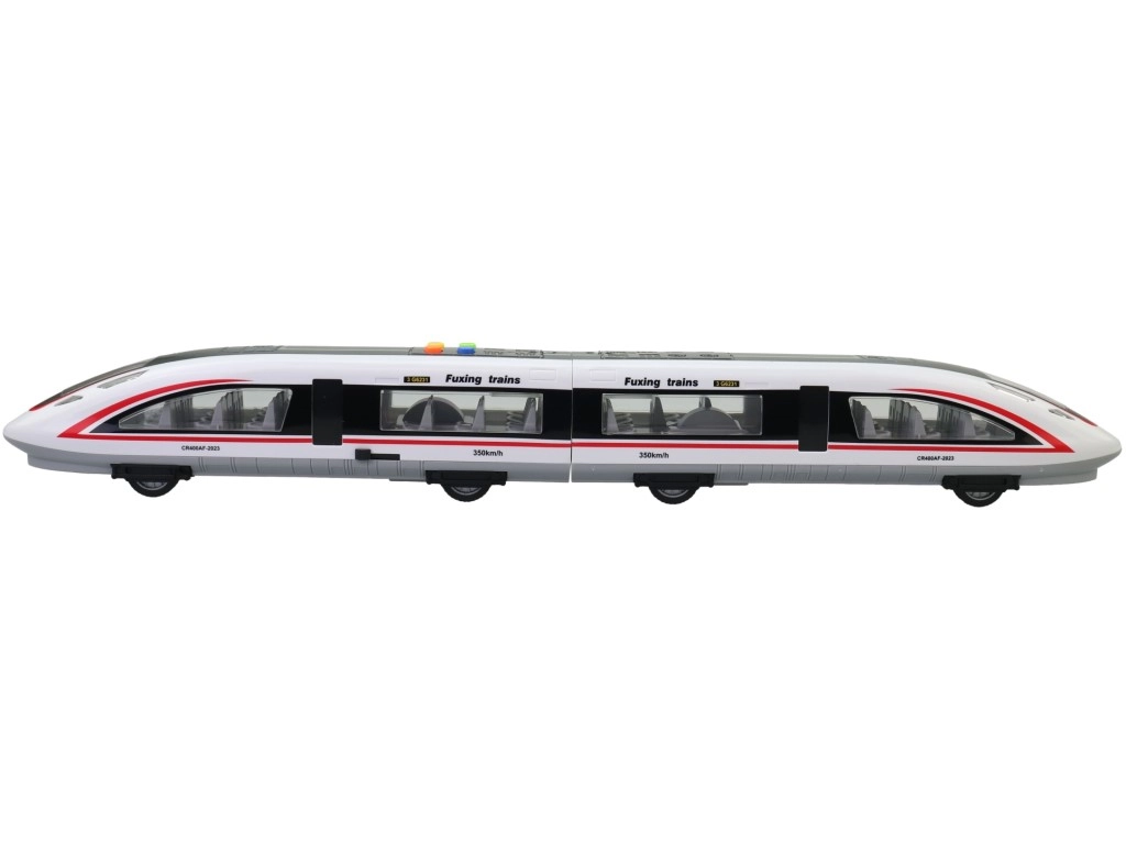 Questo modello per bambini di un moderno treno ad alta velocità offre dettagli realistici: finestre trasparenti con sedili, porte, linee aerodinamiche e la stampa di velocità 350 km/h. Sul tetto trovi pulsanti colorati per attivare effetti luminosi e sonori, che stimolano la fantasia e rendono ogni corsa un'esperienza indimenticabile.