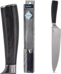Questo coltello da chef è progettato per lavorazioni rapide e precise degli ingredienti. La lama larga e affilata in acciaio damasco a 67 strati si distingue per la lunga tenuta del filo e la resistenza all’usura. Grazie all’eccellente bilanciamento e al manico ergonomico, il lavoro è confortevole e sicuro anche durante sessioni prolungate di taglio.
