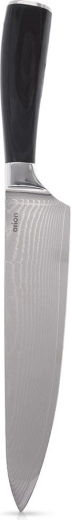 La lama in acciaio damasco a 67 strati offre durata eccezionale, lunga tenuta del filo e un motivo unico. Ideale per tagli precisi e tritatura.