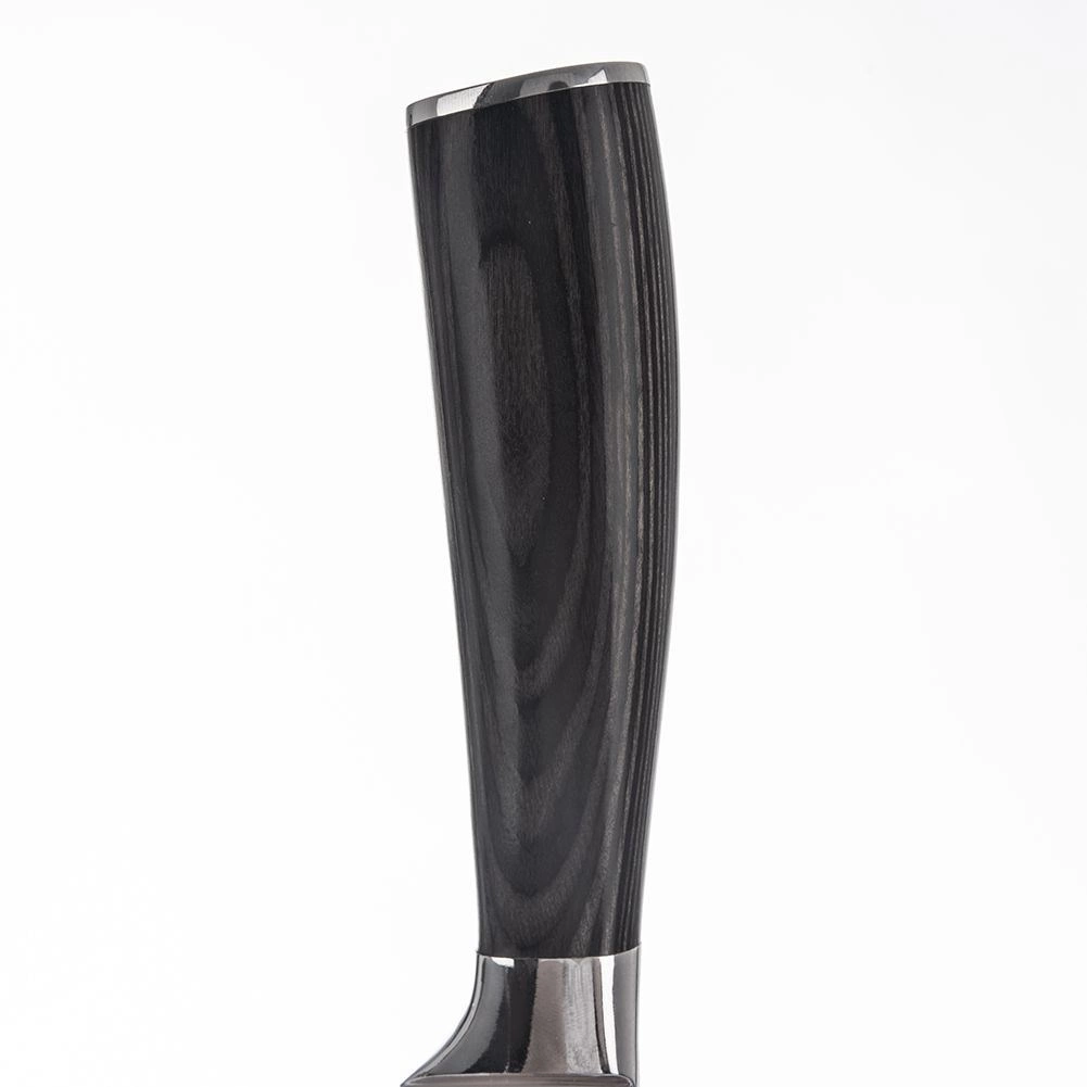 Il manico in legno pakka è sagomato per una presa sicura e resiste all’umidità, al calore e all’azione dei comuni detergenti da cucina. Il coltello è ideale per tritare erbe, tagliare frutta e verdura e porzionare la carne, mantenendo a lungo l’affilatura con la corretta manutenzione.