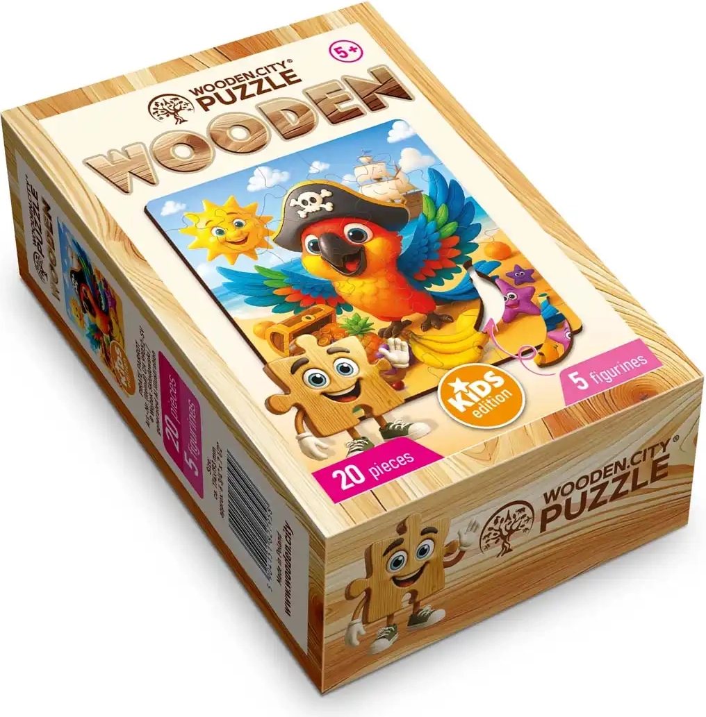 Scopri il fascino dei puzzle in legno di alta qualità WOODEN CITY con il motivo del pappagallo pirata. Il set da 20 pezzi offre 5 pezzi dalla forma unica, bordi lisci senza schegge grazie al preciso taglio laser e sostiene concentrazione, pazienza e creatività dei bambini. È inclusa una guida separata per facilitare il montaggio.