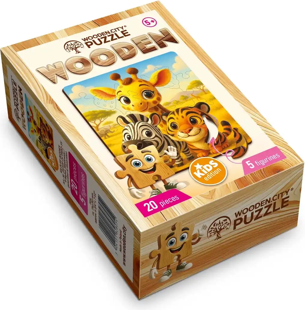 Scopri la magia del comporre con i puzzle in legno WOODEN CITY – scelta ideale per i bambini. 20 pezzi accuratamente intagliati, inclusi 5 dalla forma unica, favoriscono concentrazione, pazienza e creatività. Grazie ai bordi lisci senza schegge e al modello incluso, il gioco è divertente e sicuro.