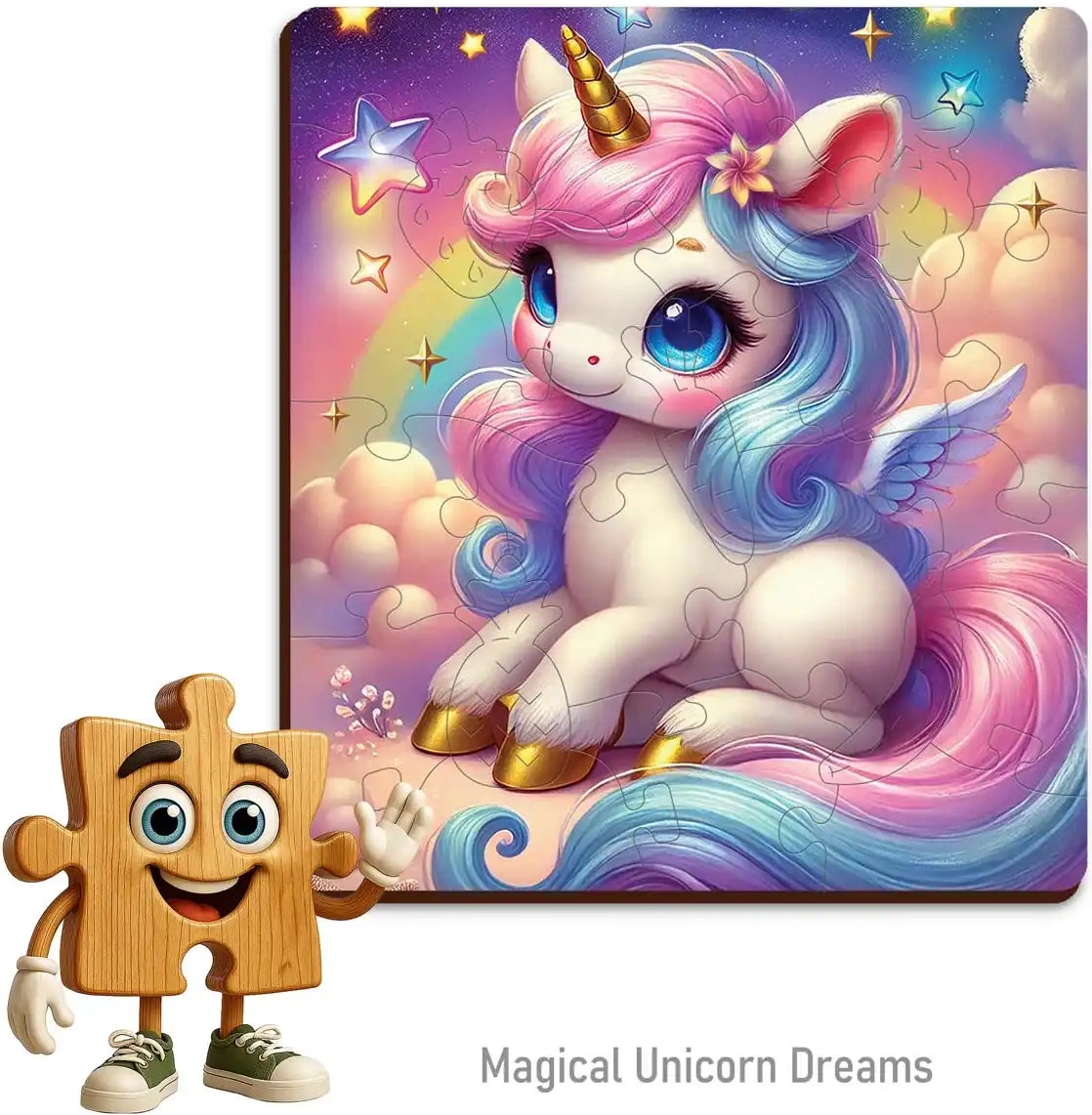 Questo set è un ottimo regalo per i bambini che amano gli unicorni e desiderano esercitarsi con un puzzle in legno di qualità firmato WOODEN CITY.