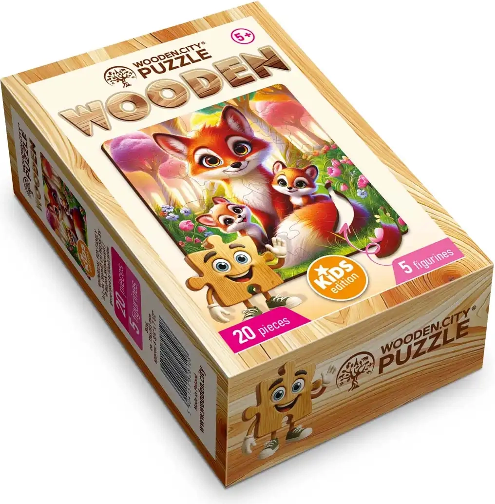 I puzzle in legno WOODEN CITY con il motivo della famiglia di volpi faranno felice ogni piccolo amante degli animali. Grazie ai pezzi accuratamente intagliati si assemblano alla perfezione e creano una scena incantevole che motiva i bambini a continuare a esplorare.