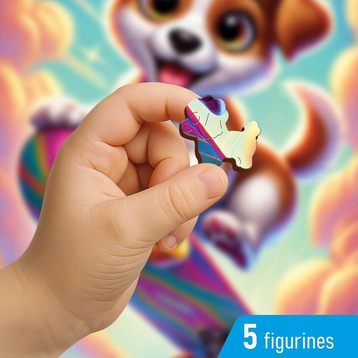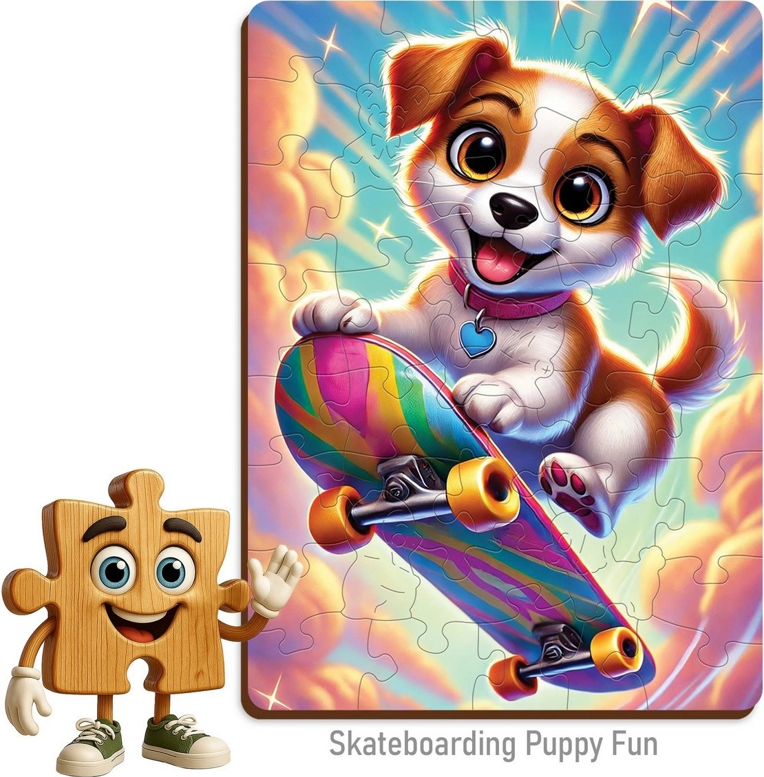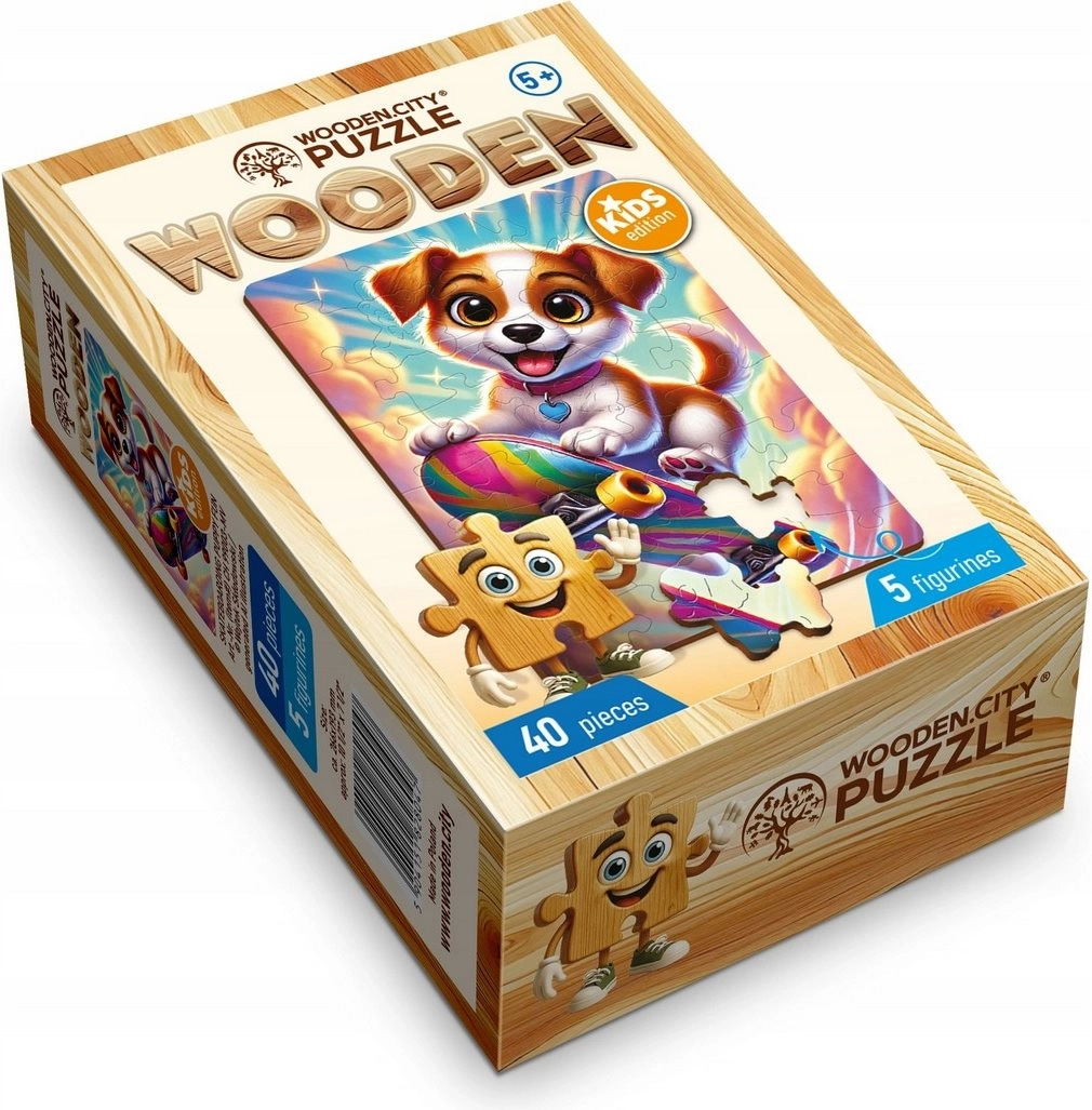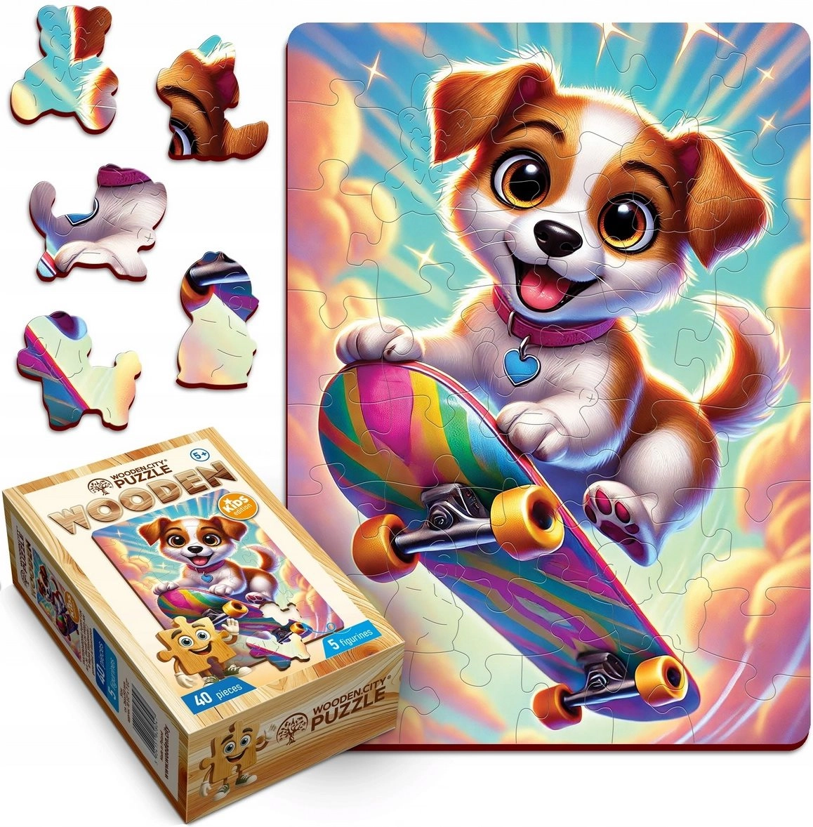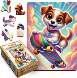 Divertenti puzzle in legno con il motivo di un tenero cagnolino sullo skateboard che piaceranno sia ai bambini piccoli che a quelli più grandi. Contengono 40 pezzi, di cui 5 dalla forma unica, che favoriscono concentrazione, pazienza e creatività. Grazie alla lavorazione laser precisa, i pezzi hanno bordi lisci senza schegge e il puzzle crea una scena incantevole.