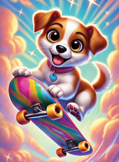 - Una bellissima scena illustrata del cagnolino sullo skateboard che motiva a completare l’immagine.