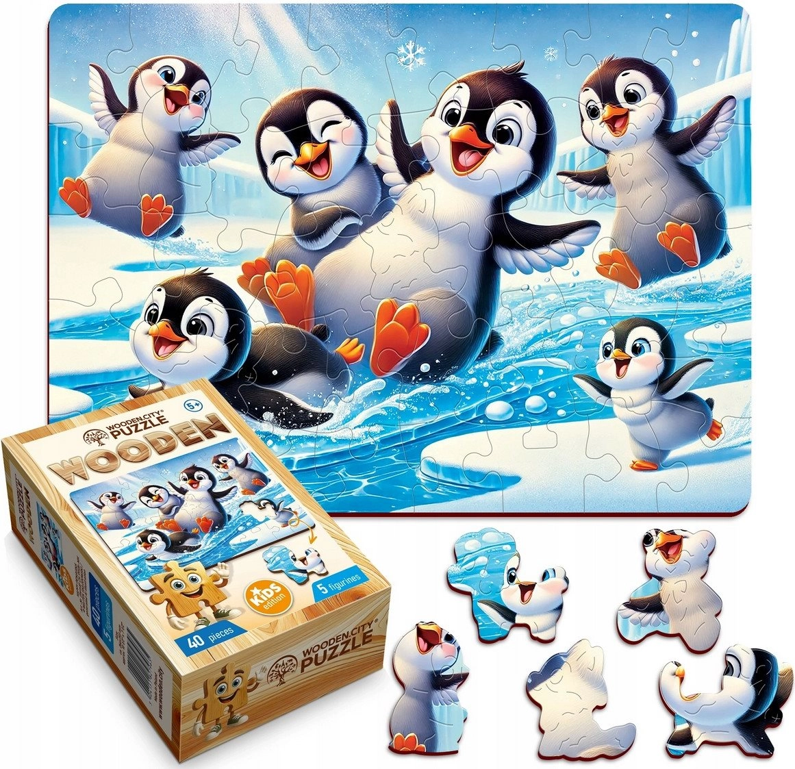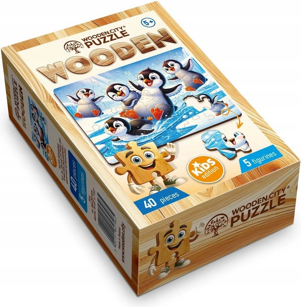 Scopri la gioia del comporre con il puzzle in legno WOODEN CITY. Questo puzzle di alta qualità con il motivo dei pinguini allegri offre 40 pezzi, di cui 5 dalla forma unica. Grazie ai bordi lisci e alla lavorazione laser precisa è ideale per i bambini: sviluppa concentrazione, pazienza e creatività. È inclusa anche una guida separata per facilitare la composizione.