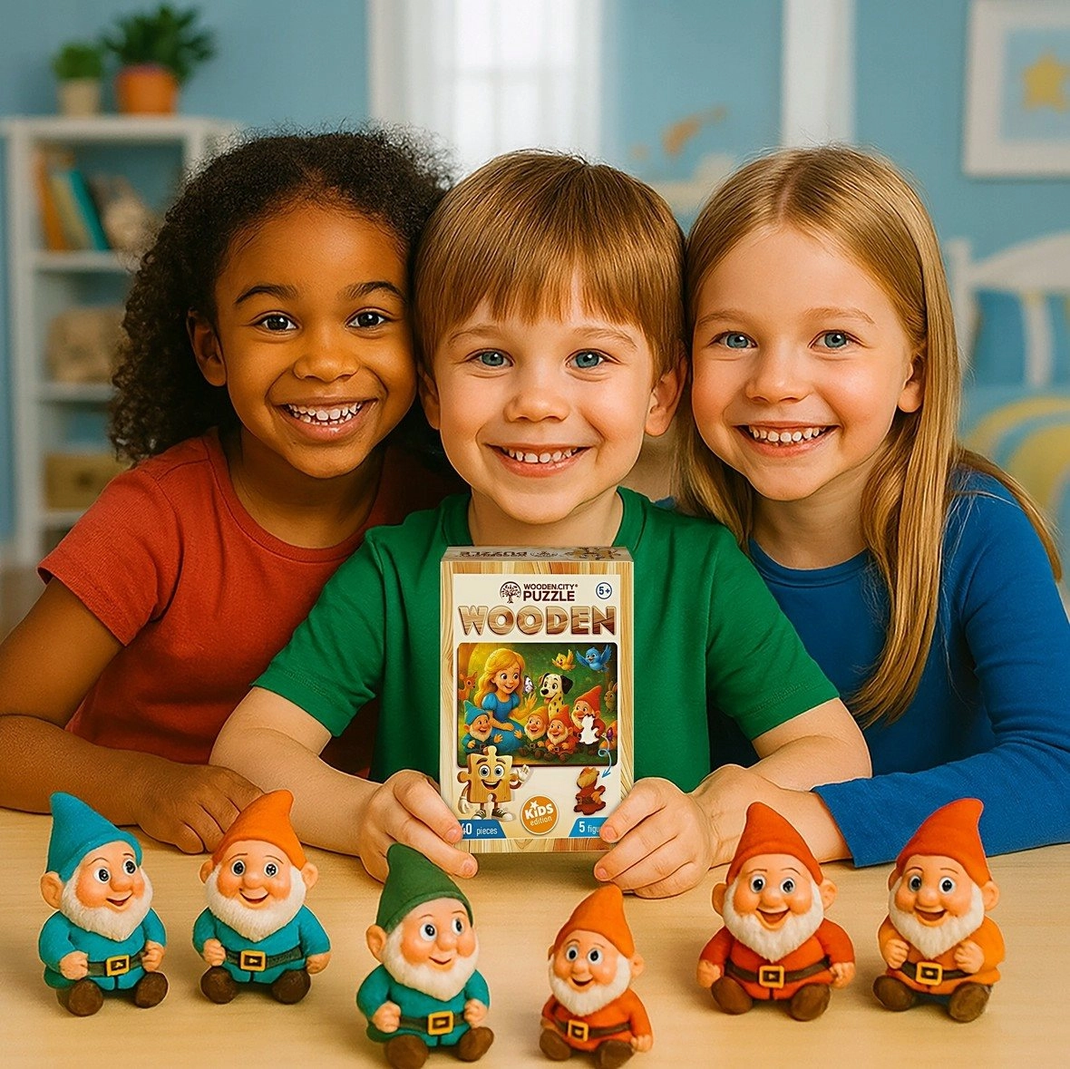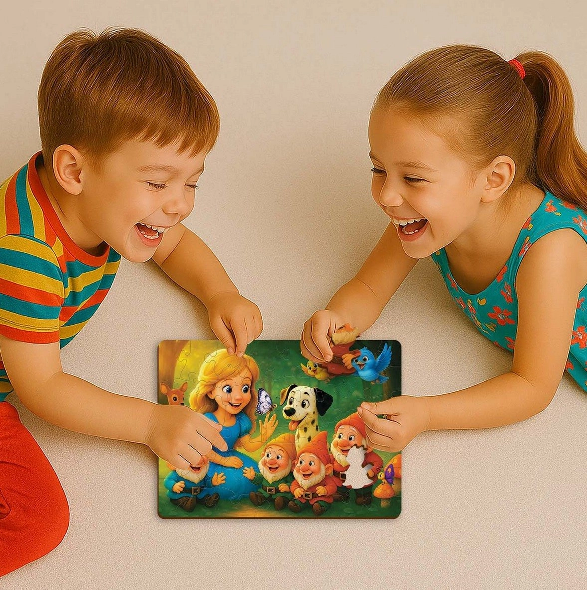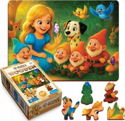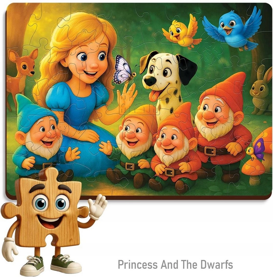 Divertente puzzle in legno per bambini con tema principessa e nani, con 40 pezzi accuratamente intagliati, di cui 5 dalla forma unica. Grazie ai bordi lisci e alla lavorazione laser di precisione, il montaggio è sicuro e piacevole. Il puzzle sviluppa concentrazione, pazienza e creatività e nella confezione è inclusa anche un'illustrazione guida per facilitare l'assemblaggio.