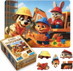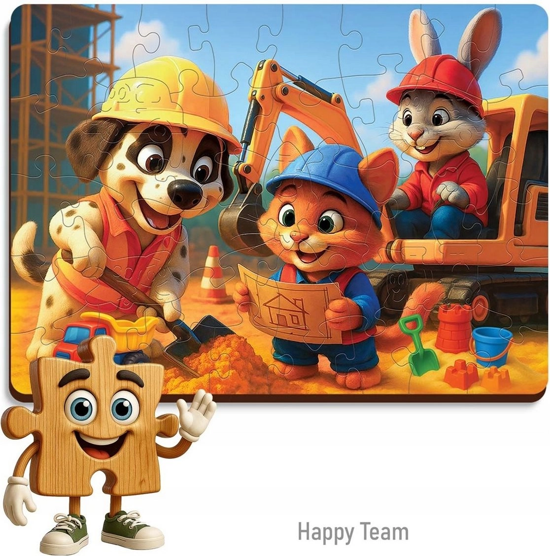 Il puzzle in legno WOODEN CITY Squadra Allegra offre ai bambini un divertente assemblaggio con materiali in legno piacevoli e una lavorazione di qualità. Grazie ai 40 pezzi robusti e ai 5 elementi dalla forma speciale, i bambini allenano la motricità fine e il pensiero logico, godendosi al contempo una scena colorata con simpatici costruttori animali.