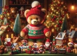 Una colorata scena festiva con orsetto, mini casette, alberelli e trenino garantisce la vera atmosfera di Natale – ideale anche come decorazione una volta completato.