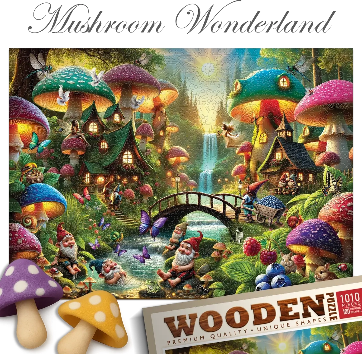 Questo puzzle in legno premium del marchio WOODEN CITY conquisterà gli amanti dei rompicapi e del design. Il tema del regno dei funghi spicca per la lavorazione dettagliata e i colori vivaci, che rendono la composizione elegante e divertente per ore. Grazie al taglio laser preciso, i pezzi combaciano perfettamente e l’esperienza di assemblaggio è fluida e piacevole.