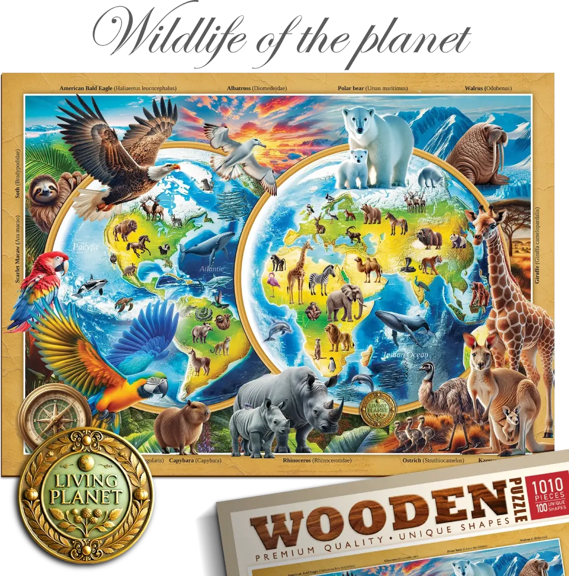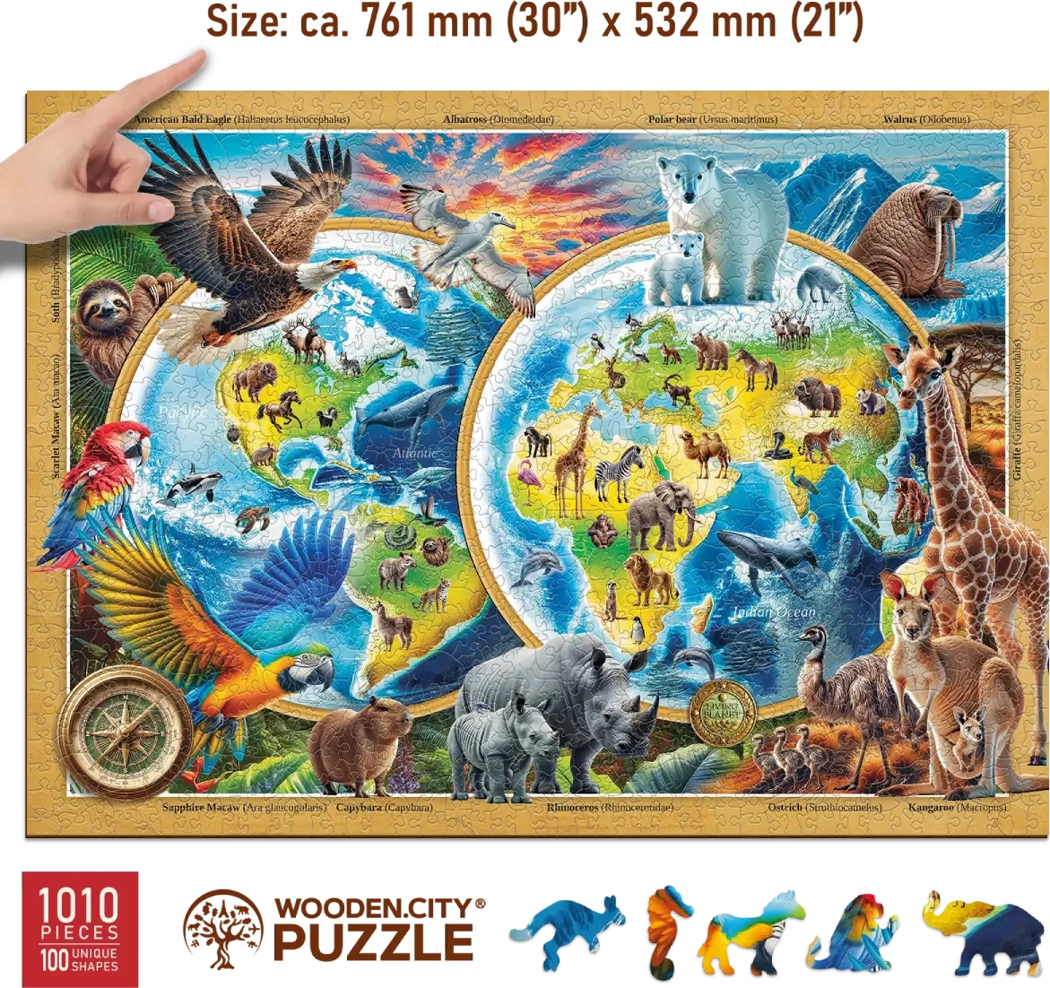 Il puzzle in legno WOODEN CITY Pianeta degli animali selvatici colpisce per la grafica ricca e la realizzazione in legno di qualità, piacevole al tatto e resistente. Grazie al taglio laser di precisione, i pezzi si incastrano perfettamente e l’assemblaggio è fluido e senza schegge. Nella confezione è incluso anche un poster guida, che facilita l’orientamento anche ai meno esperti.